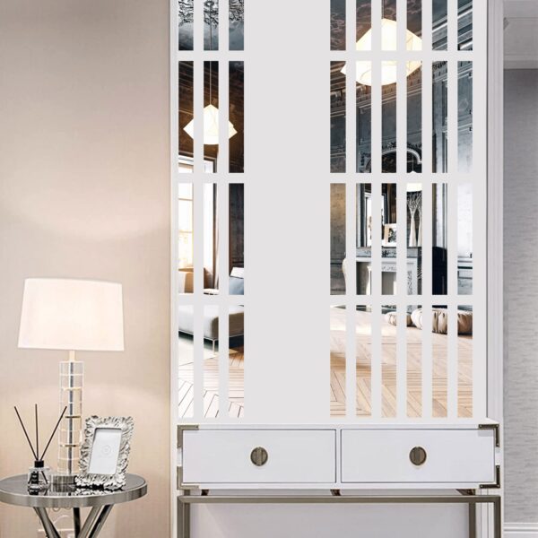 Wczuj się w rolę projektanta wnętrz i odmień swoje pomieszczenia! Stwórz swoje oryginalne lustro! Kształt zależy od Ciebie! Dowolność układu szkieł pozwala Tobie stworzyć własną kompozycję o niepowtarzalnym i oryginalnym wyglądzie. Odmień swoje wnętrze i nadaj mu nowego charakteru. Komplet zawiera 10 sztuk szkła akrylowego w kształcie prostokątów.