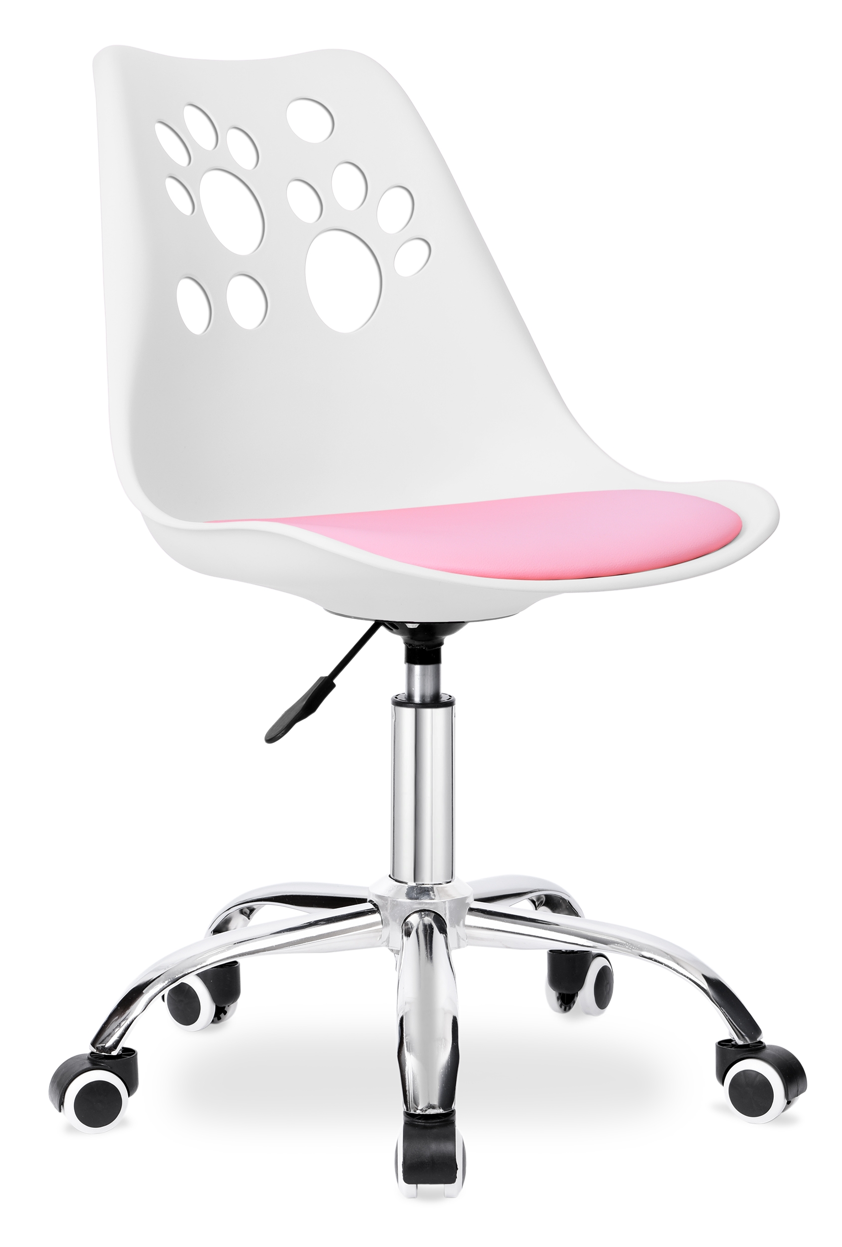 Krzesło obrotowe dziecięce Grover to solidny fotel biurowy z płynną regulacją wysokości. Oparcie wykonane z tworzywa w zabawne, zwierzęce wzorki- z pewnością zdobędzie uznanie podopiecznych. Miękkie, wygodne siedzisko z ekoskóry oraz stabilnej podstawy zwieńczonej chromem na wysoki połysk.