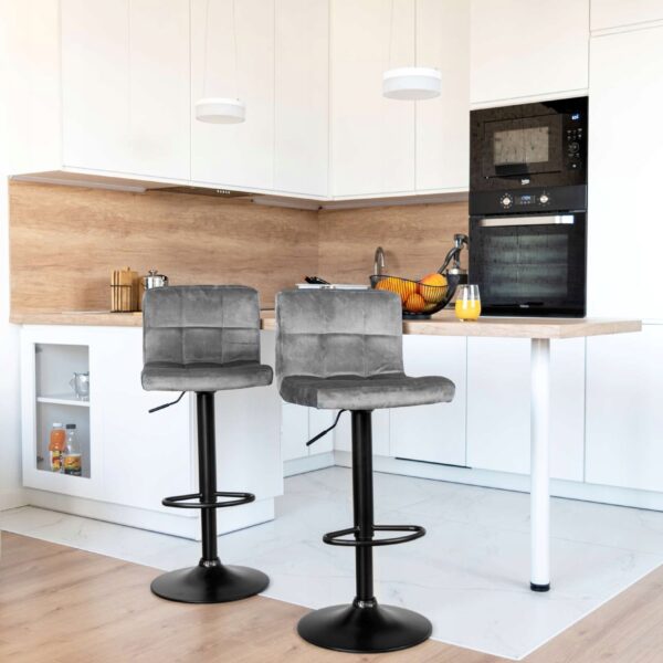 ✅Czarne elementy – Czarne elementy dodają hokerowi nowoczesnego charakteru oraz eleganckiego wykończenia, co sprawia, że jest on wyjątkowo atrakcyjnym elementem wystroju wnętrza. Ich połyskująca powierzchnia efektownie kontrastuje z welurową tapicerką, nadając całej konstrukcji ekskluzywnego i nowoczesnego wyglądu.