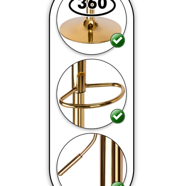 Hoker posiada specjalnie profilowane oparcie, regulowaną wysokość i wygodny podnóżek. Cechuje go także stabilna, antypoślizgowa podstawa, dzięki czemu użytkowanie jest znacznie bezpieczniejsze. Prezentowany poniżej model odznacza się aksamitnym welurowym obiciem i modną, stabilną podstawą w eleganckim złotym kolorze. Ciekawe, geometryczne przeszycia tworzą przyciągający uwagę wzór kraty, obok której nikt nie przejdzie obojętnie. To wszystko sprawia, że model świetnie pasuje do nowocześnie urządzonych wnętrz. Sprawdzi się w każdym wnętrzu, zarówno w przestrzeni mieszkalnej jak i lokalach usługowych, takich jak salon fryzjerski czy punkt informacyjny.