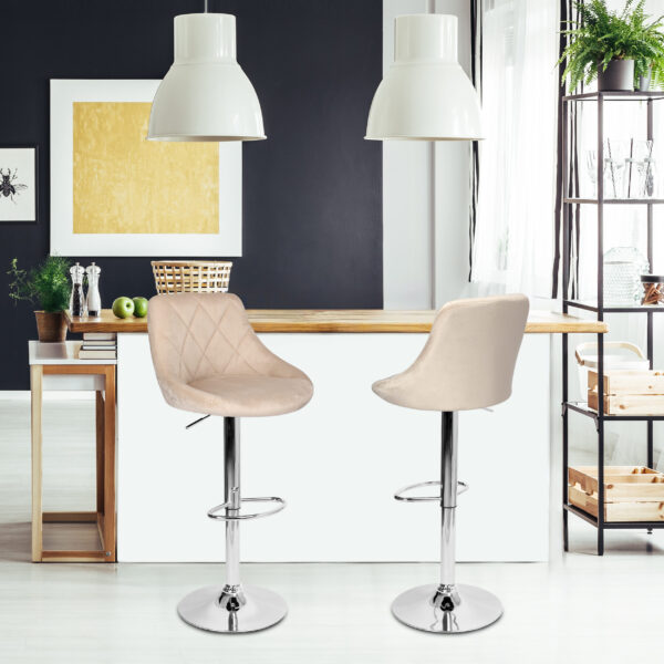 ✅Chromowane elementy – Chromowane elementy dodają Hokerowi Cydro nowoczesnego charakteru oraz eleganckiego wykończenia, co sprawia, że jest on wyjątkowo atrakcyjnym elementem wystroju wnętrza. Ich połyskująca powierzchnia efektownie kontrastuje z welurową tapicerką, nadając całej konstrukcji ekskluzywnego i nowoczesnego wyglądu.