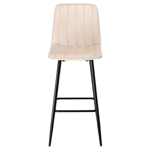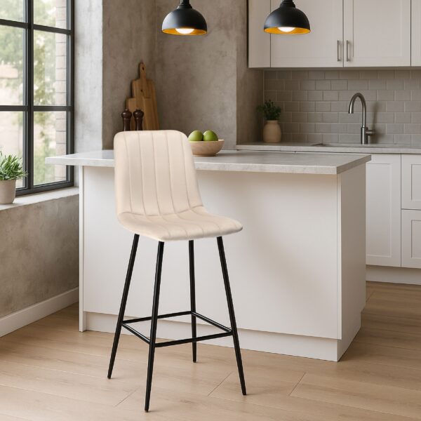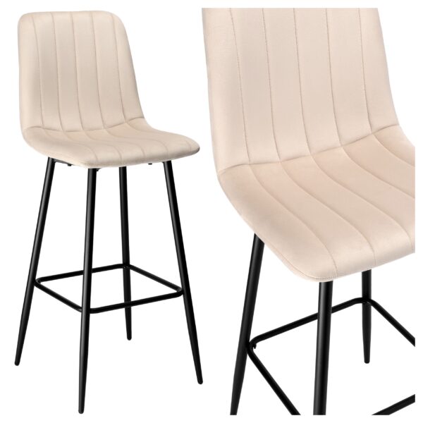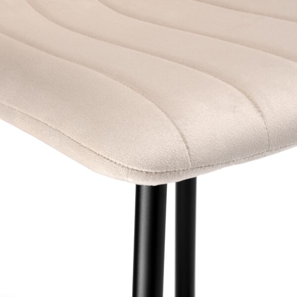 Hoker barowy Toronto to doskonały wybór dla osób, które cenią sobie komfort i nowoczesny design. Miękkie, welurowe siedzisko oraz ergonomiczne oparcie zapewniają wygodę nawet podczas długiego użytkowania. Stabilna konstrukcja z malowanej proszkowo stali, wykończona w matowej czerni, dodaje hokerowi industrialnego charakteru, a geometryczne przeszycia tworzą efektowny wzór.