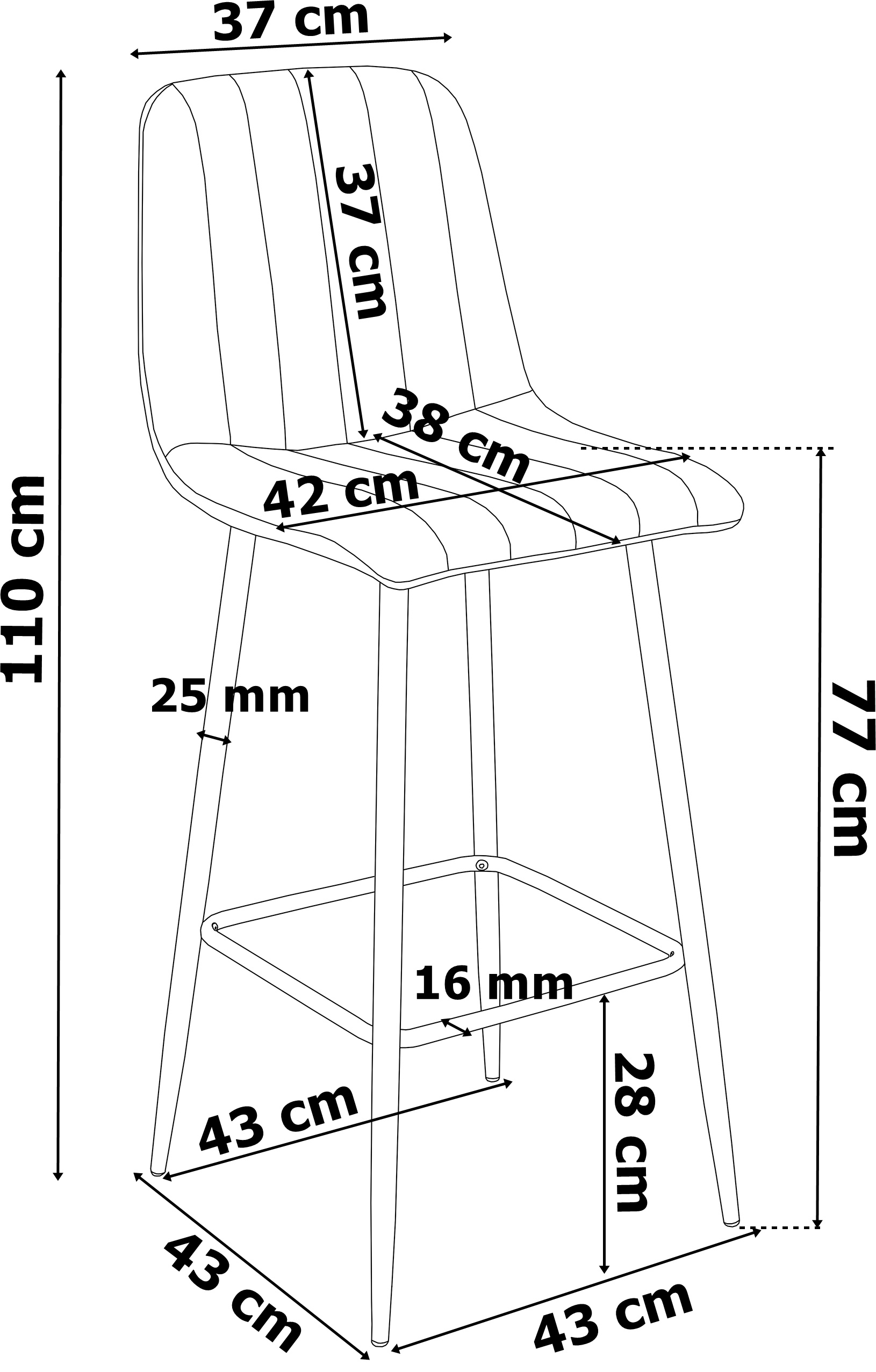 Wysokość do siedziska 77 cm