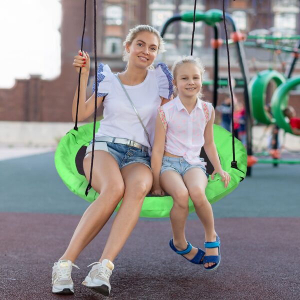 Linki huśtawki wykonano ze splotu nylonu umożliwiają łatwą regulację długości. Stalowy stelaż dla poprawienia bezpieczeństwa obito specjalną pianką. Siedzisko typu bocianie gniazdo z materiału Oxford 600D zapewni wytrzymałość i zwiększy wygodę użytkowania.