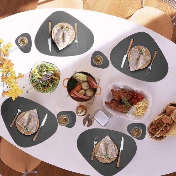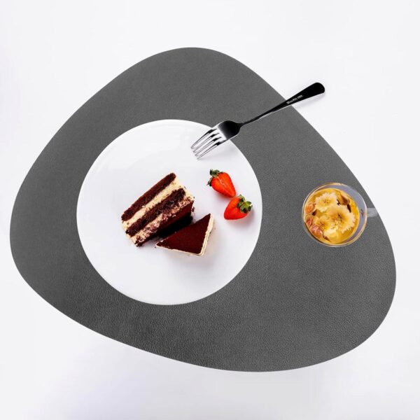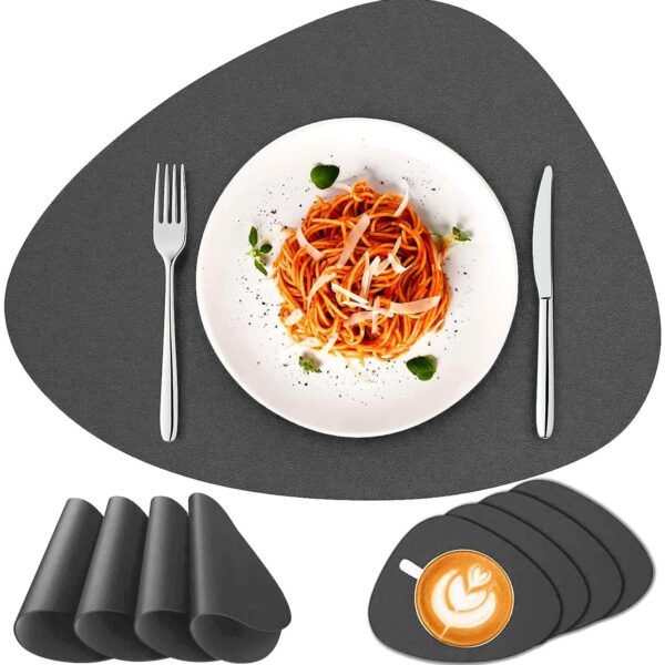 Komplet podkładek Trival to wysokiej jakości zestaw podkładek na stół w eleganckim, szarym kolorze, wykonanych z trwałego materiału PVC. Ten zestaw to idealne rozwiązanie, które nie tylko ochroni Twój stół przed plamami i uszkodzeniami, ale także doda elegancji Twojemu wnętrzu. W skład tego kompletu wchodzą 4 duże podkładki, które doskonale sprawdzą się pod talerze, zapewniając stabilne i estetyczne podłoże pod Twoje dania. Dodatkowo zestaw zawiera także 4 mniejsze podkładki, idealne pod filiżanki i kubki, chroniąc powierzchnię stołu przed ewentualnymi uszkodzeniami spowodowanymi przez gorące napoje. Komplet podkładek Trival nie tylko dba o Twój stół, ale także wzbogaca jego wygląd.