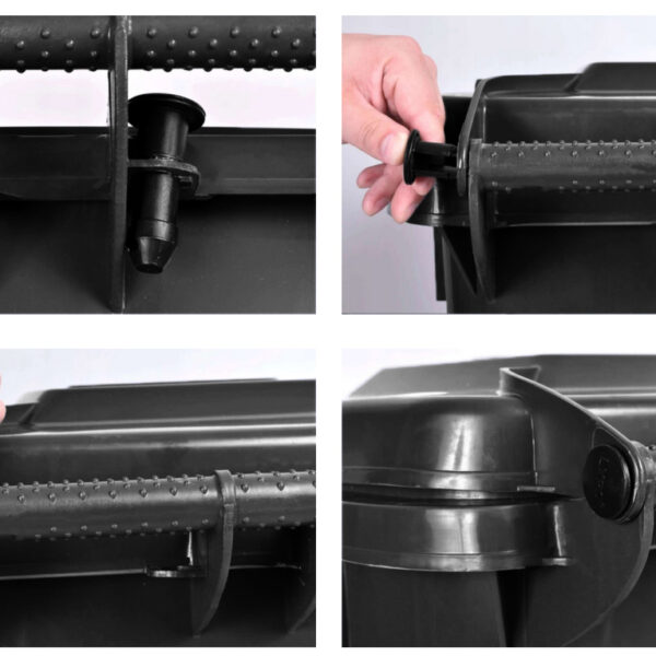 Mocne cichobieżne gumowe koła osadzone na stalowej osi gwarantują szybki i cichy wywóz śmieci.