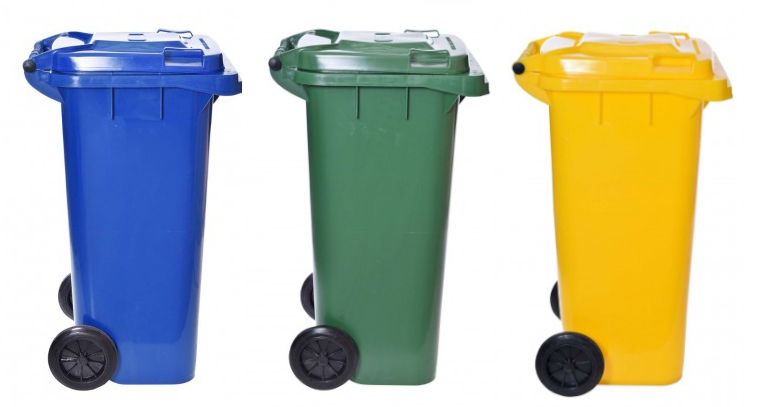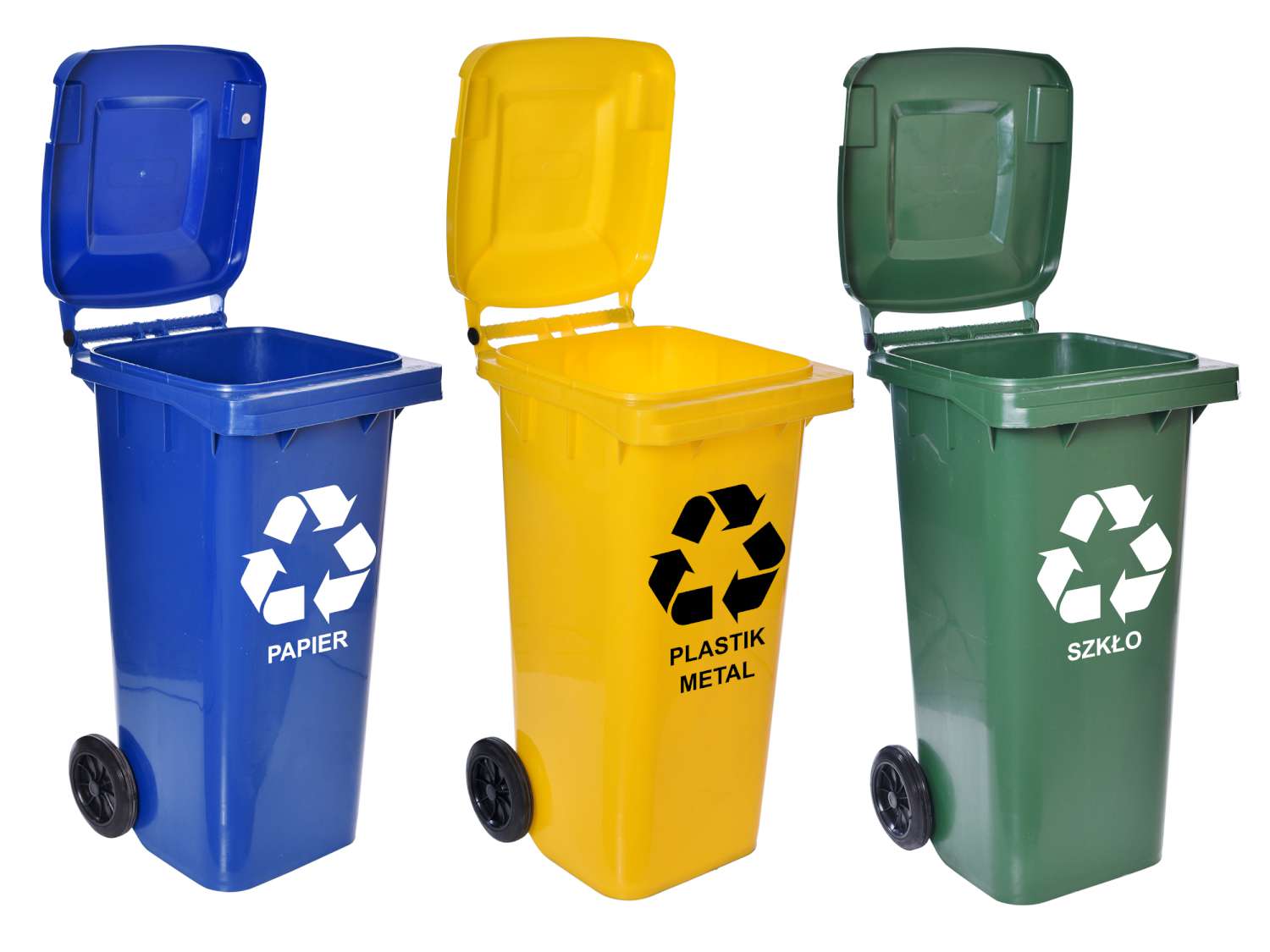 Komplet pojemników na odpady śmietnik 120l zielony niebieski żółty