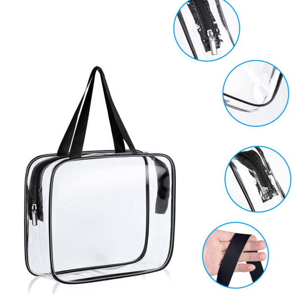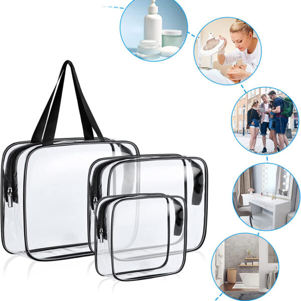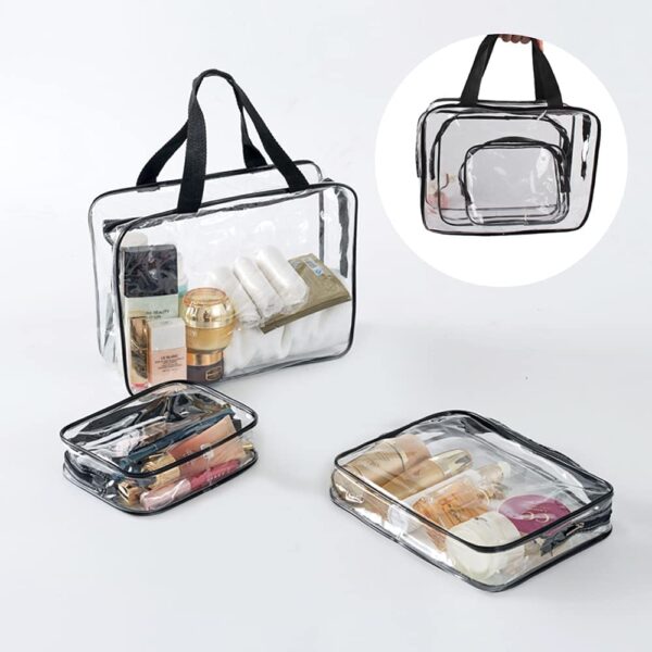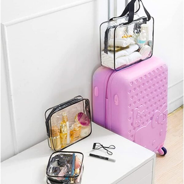 Zestaw kosmetyczek Penne to nie tylko idealne rozwiązanie dla codziennych potrzeb, ale również niezastąpiony towarzysz podczas podróży. Dzięki trzem różnym rozmiarom, kosmetyczki z zestawu Penne bez problemu pomieszczą się w każdej torbie podróżnej czy walizce, zapewniając w ten sposób porządek i organizację podczas podróży. Ich przezroczyste wykończenie pozwala na szybkie i łatwe znalezienie potrzebnego kosmetyku bez konieczności rozpakowywania całej zawartości bagażu. Dlatego zestaw kosmetyczek Penne to idealne rozwiązanie zarówno dla krótkich, jak i długich wyjazdów. Kosmetyczki zostały wykonane z trwałego i łatwego w czyszczeniu materiału PVC, dzięki czemu cieszą się długą żywotnością. Każda z nich posiada wygodny zamek błyskawiczny, co umożliwia szybki i łatwy dostęp do zawartości.