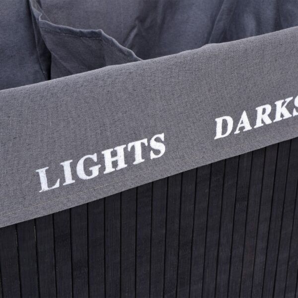 Kosz bambusowy pojemnik na pranie 2 komory czarny FSC