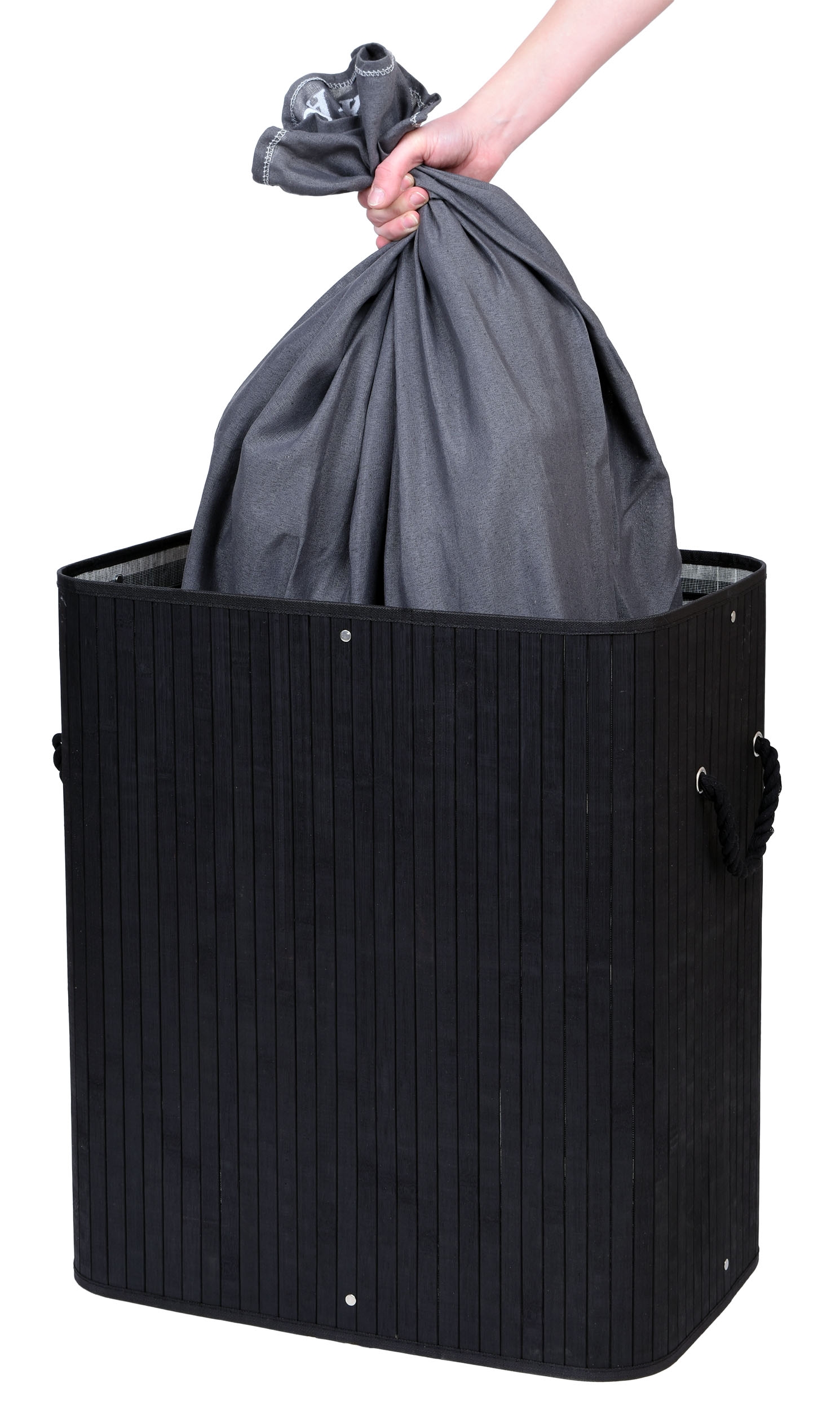Najpiękniejszy i najtrwalszy, stylowy pojemnik na pranie o pojemności 100 litrów. Wykonany z naturalnego bambusa. Wnętrze wypełnia lniana torba z praktyczną przegrodą na jasne i ciemne pranie. Prosta, budowa, sztywna konstrukcja. Ukrywa nieprzyjemne zapachy. Umożliwia wygodne szybkie i pranie.
