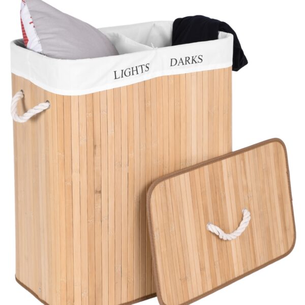 Kosz bambusowy pojemnik na pranie 2 komory naturalny