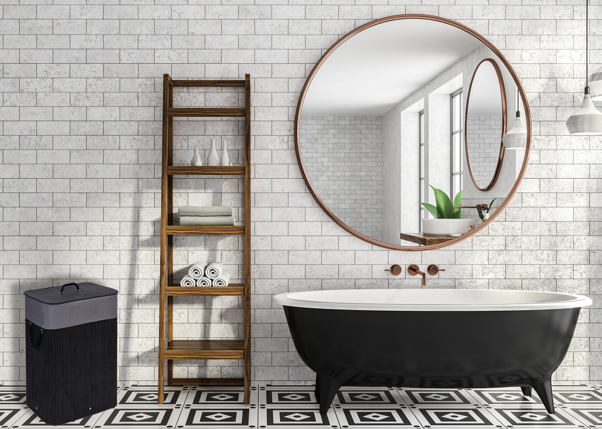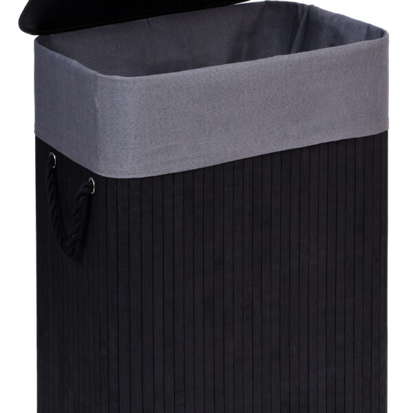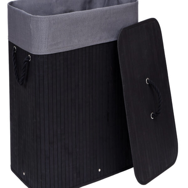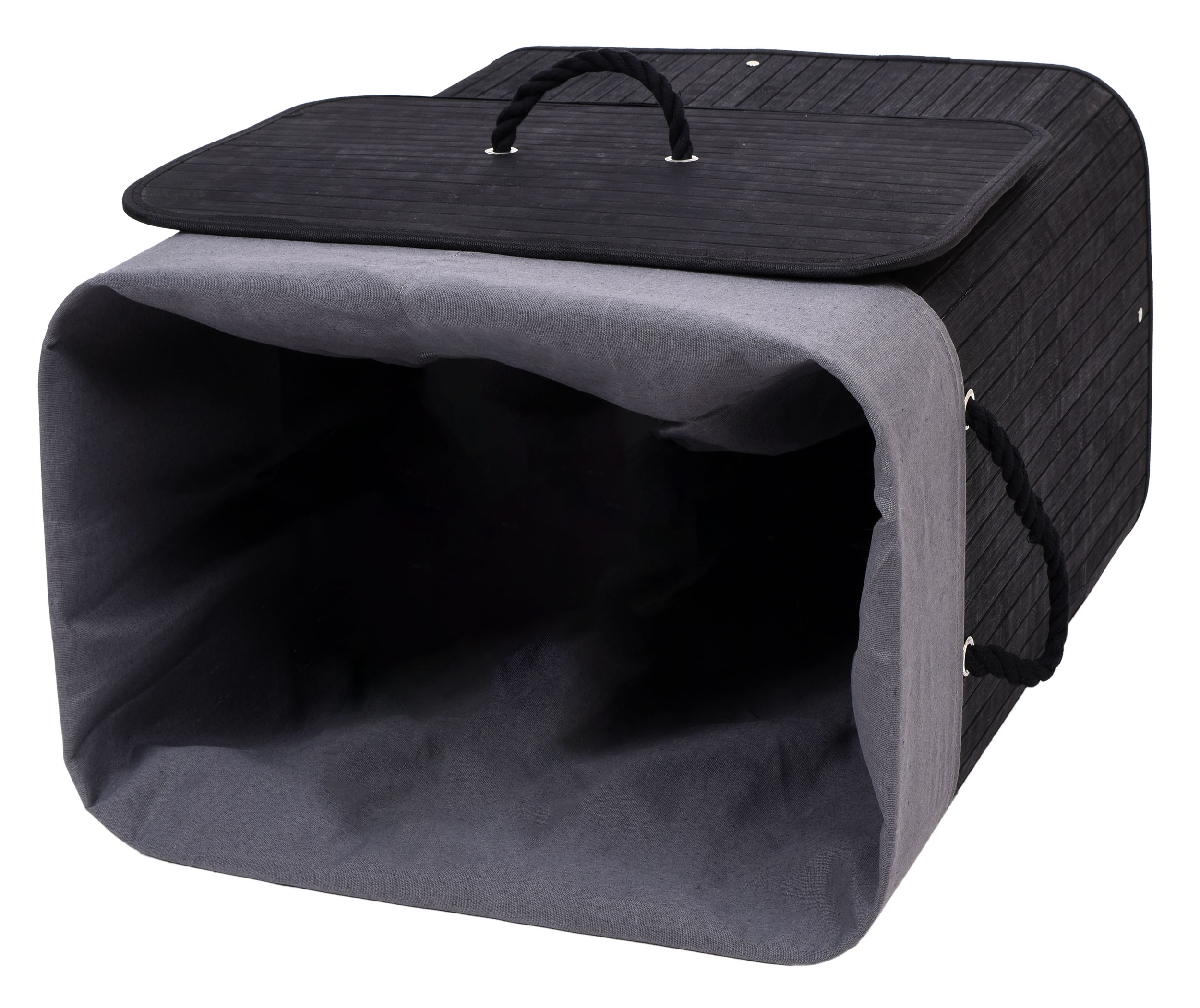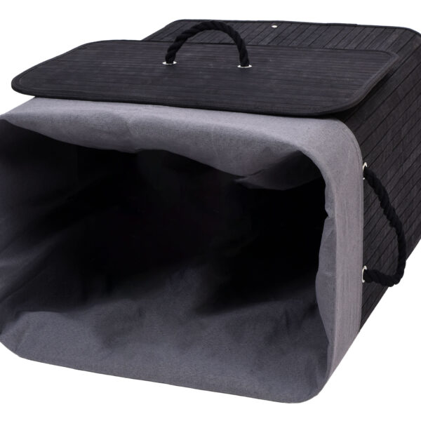 Kosz na pranie bambusowy z pokrywą 80L czarno-szary