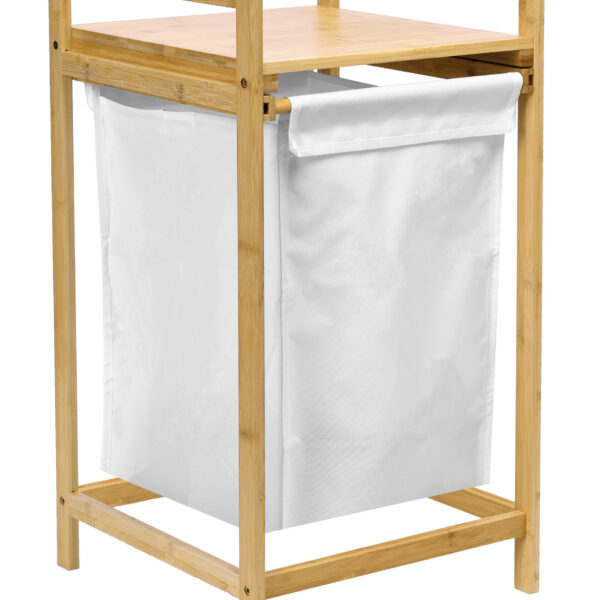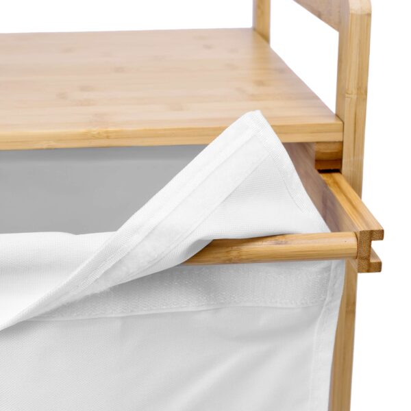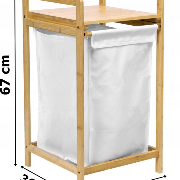 Bambusowy kosz na pranie Hanoi to estetyczny i pojemny kosz, który pomieści mnóstwo odzieży. Wykonany ze szlifowanego bambusa, nie ma ostrych krawędzi, jest przyjemnie gładki i starannie wykończony. Górna półka może służyć jako miejsce na akcesoria łazienkowe, środki piorące, a także jako miejsce na dekoracje czy świece zapachowe. Kosz posiada szyny, które ułatwiają napełnianie i opróżnianie materiałowego worka. Dzięki nim cały worek można wysunąć i przetransportować. Materiał przypięty jest na rzep, można go zdjąć i wyprać. Hanoi złożysz bez wiercenia i specjalistycznych narzędzi. Montaż zajmuje dosłownie chwilę, a wszystko co niezbędne do jego złożenia znajdziesz w zestawie.