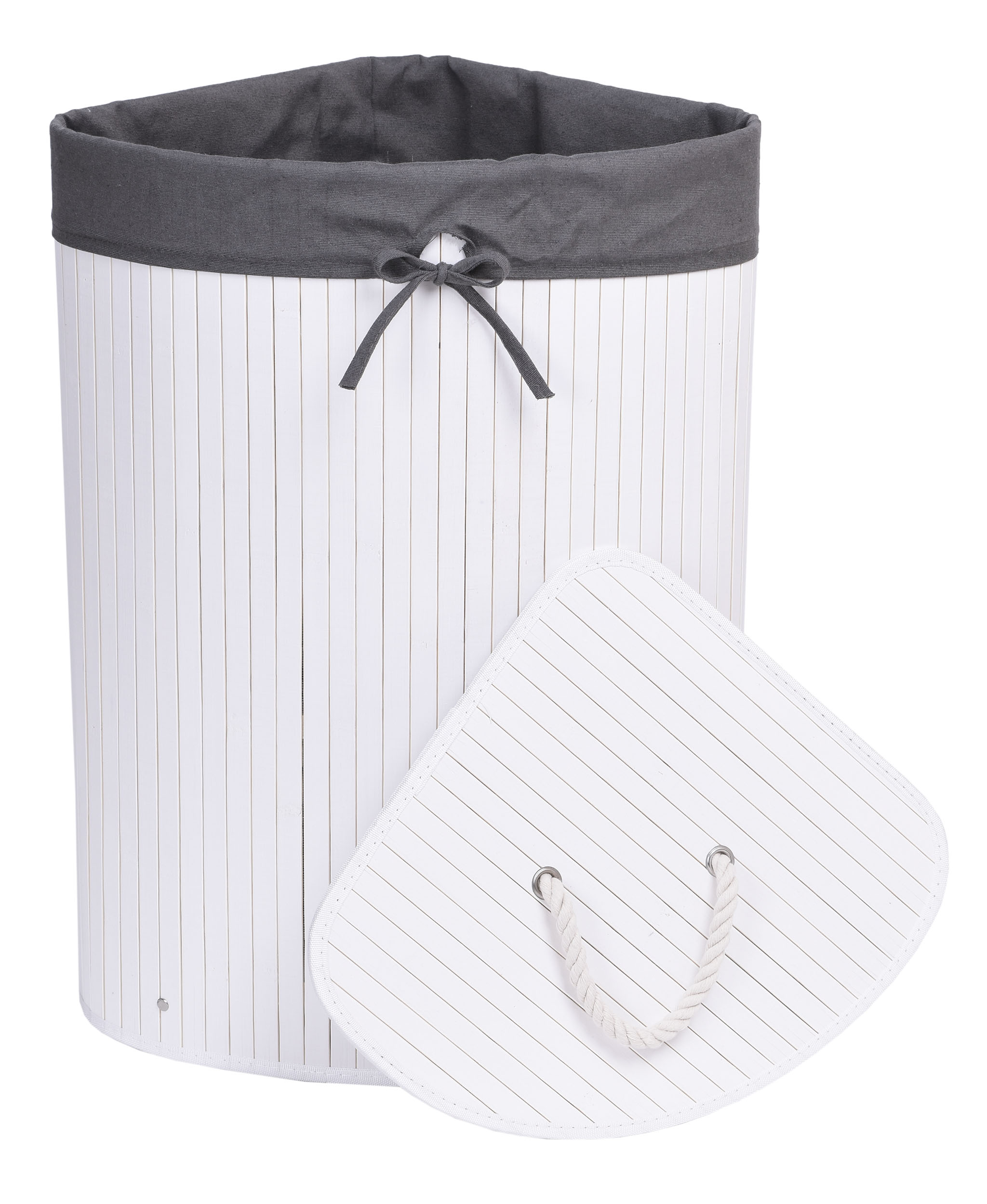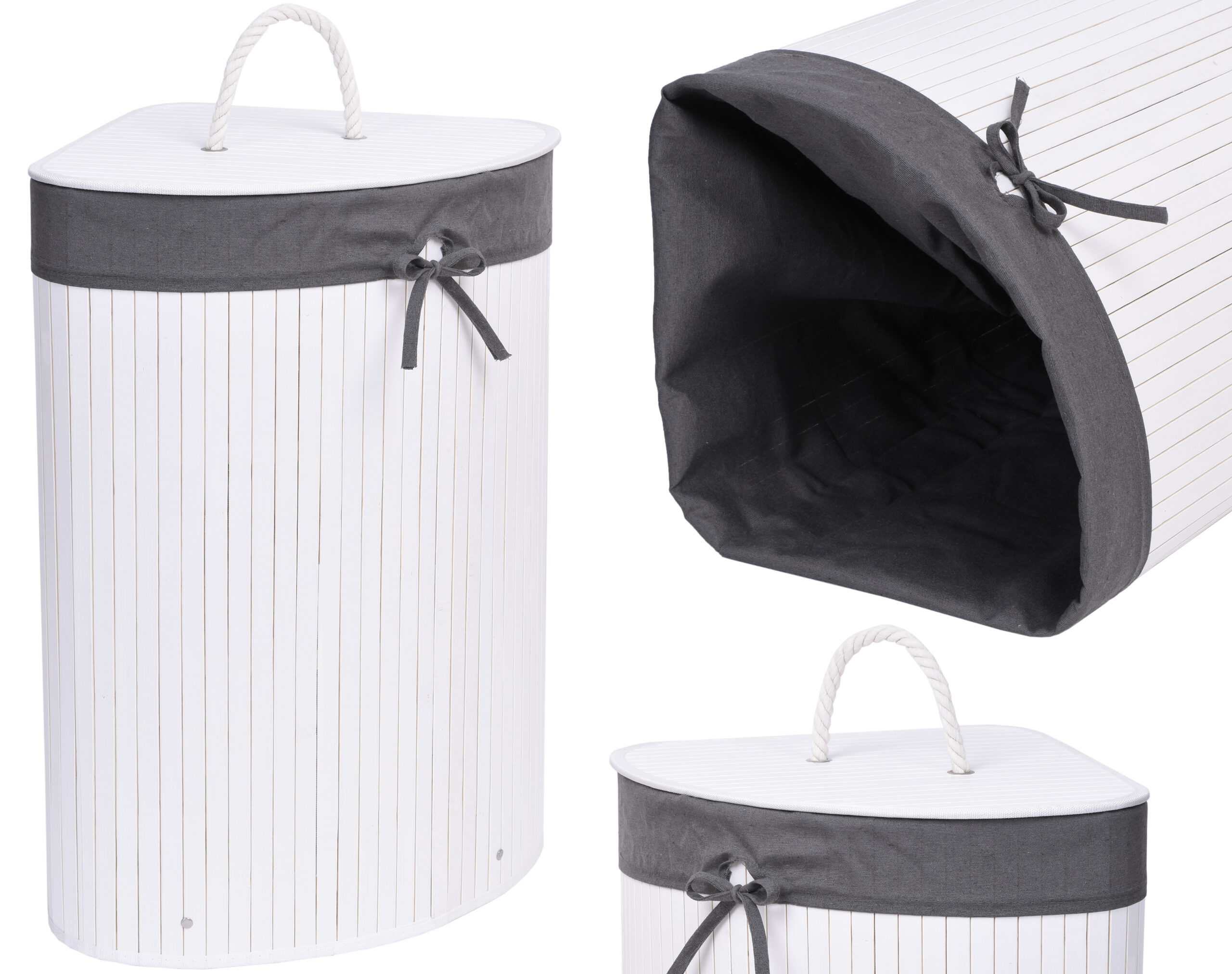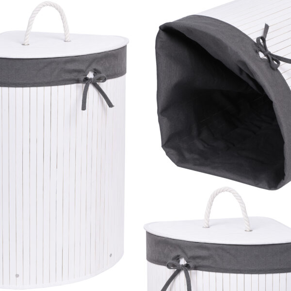 Kosz narożny na pranie bambusowy z pokrywą