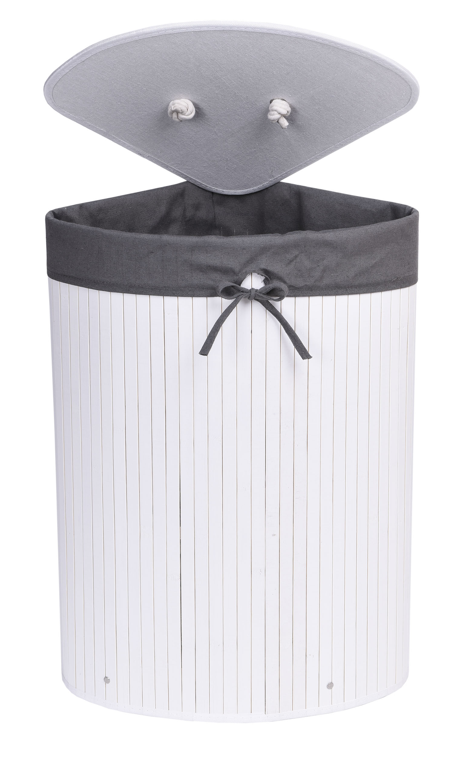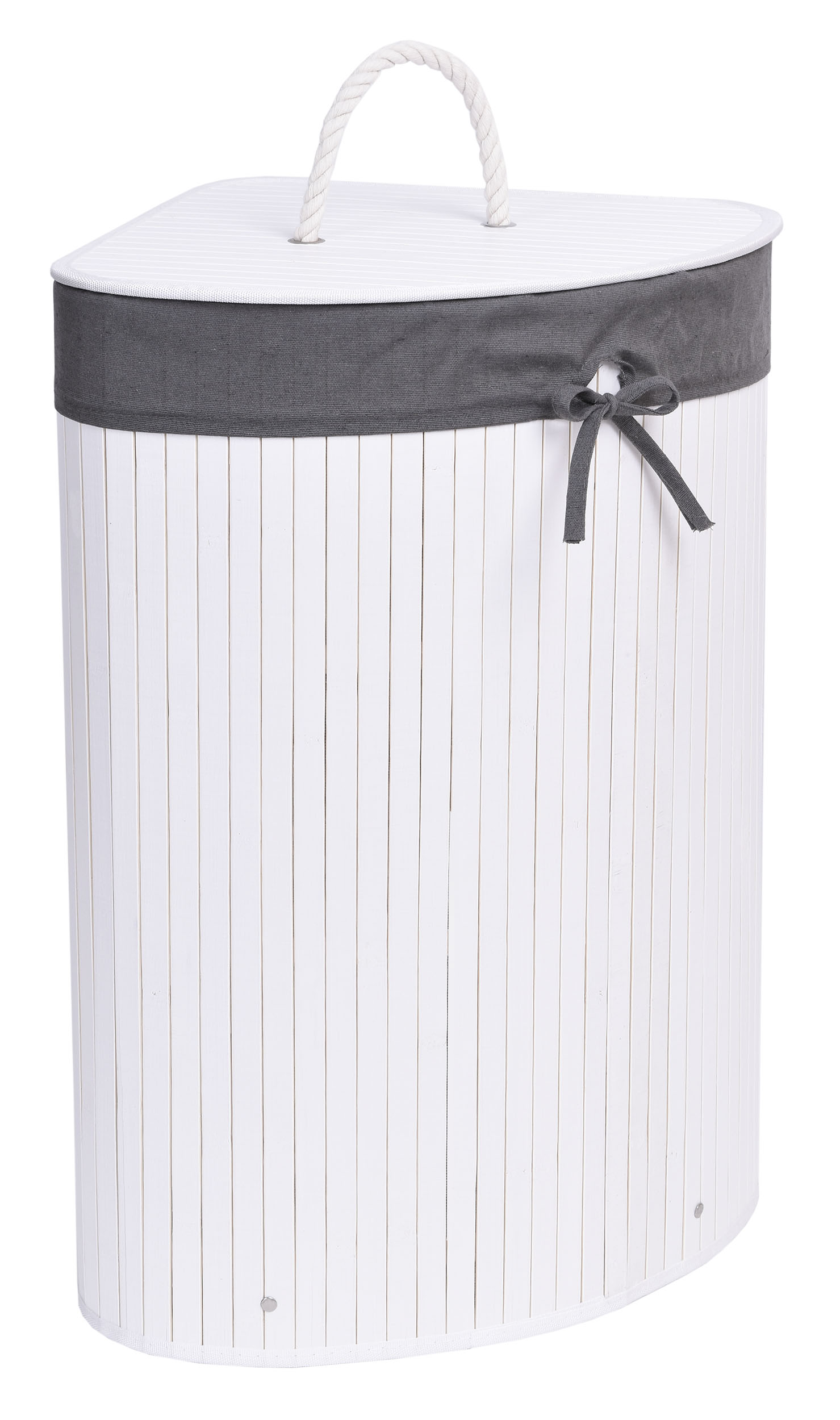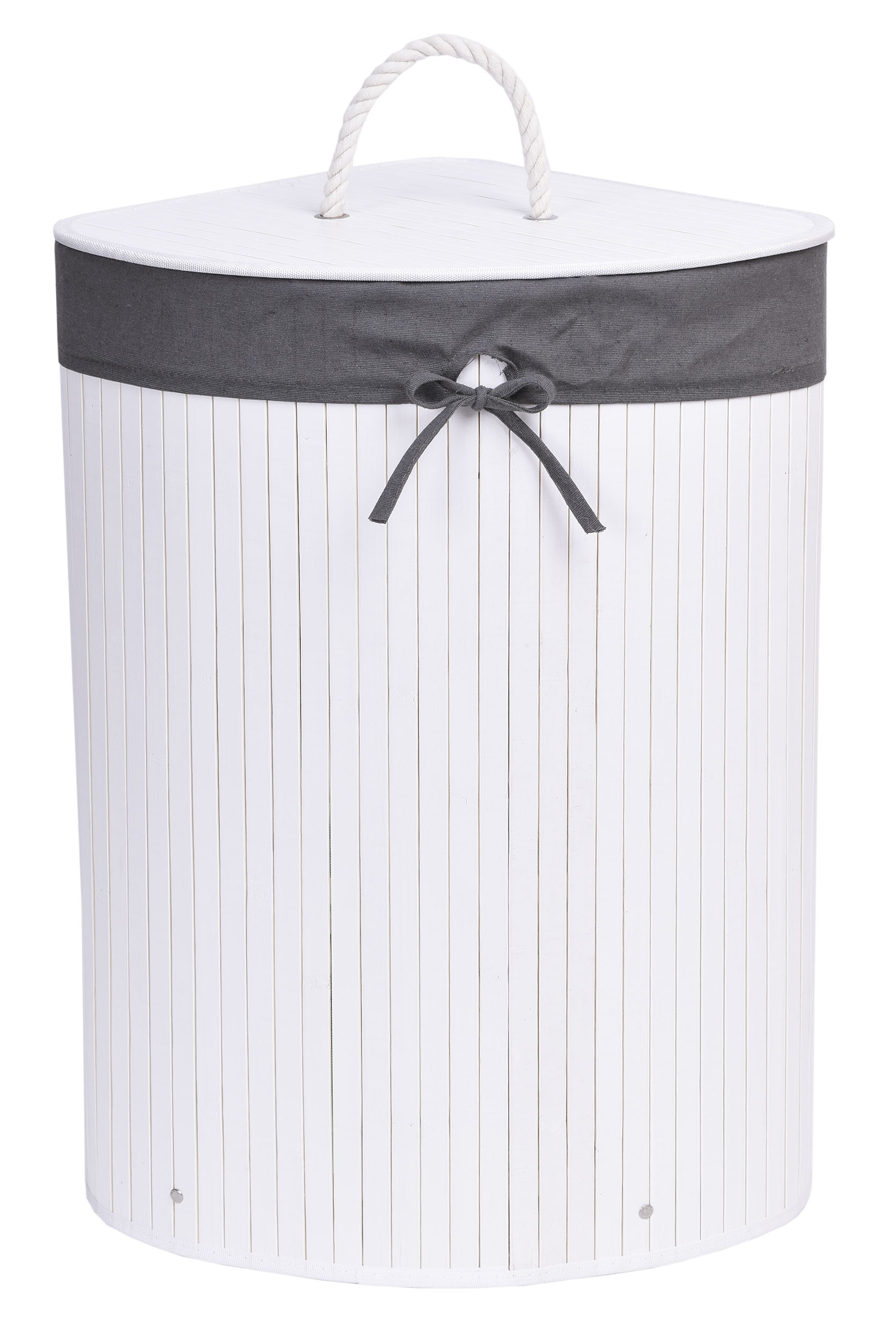 Kosz narożny na pranie bambusowy z pokrywą