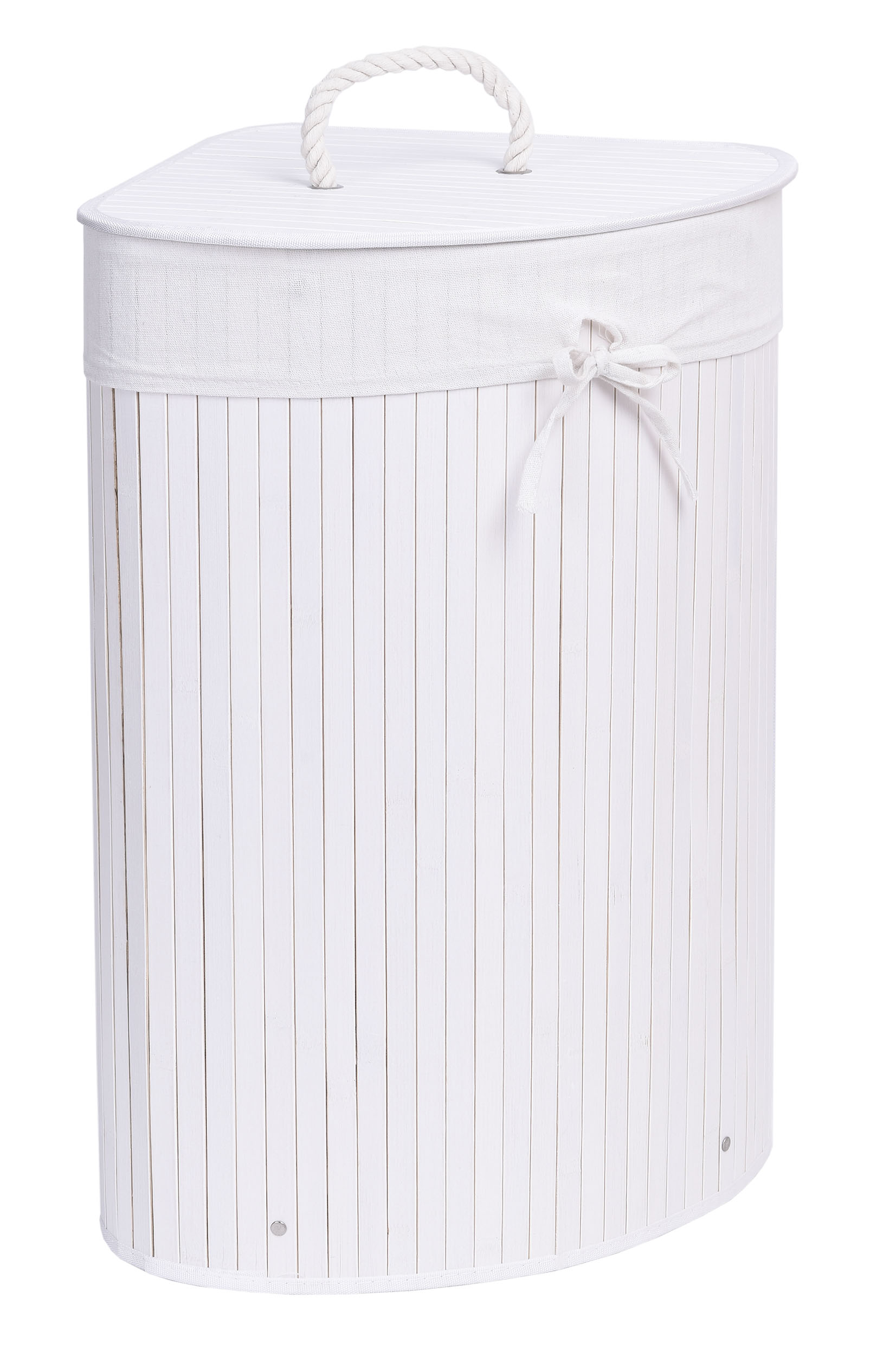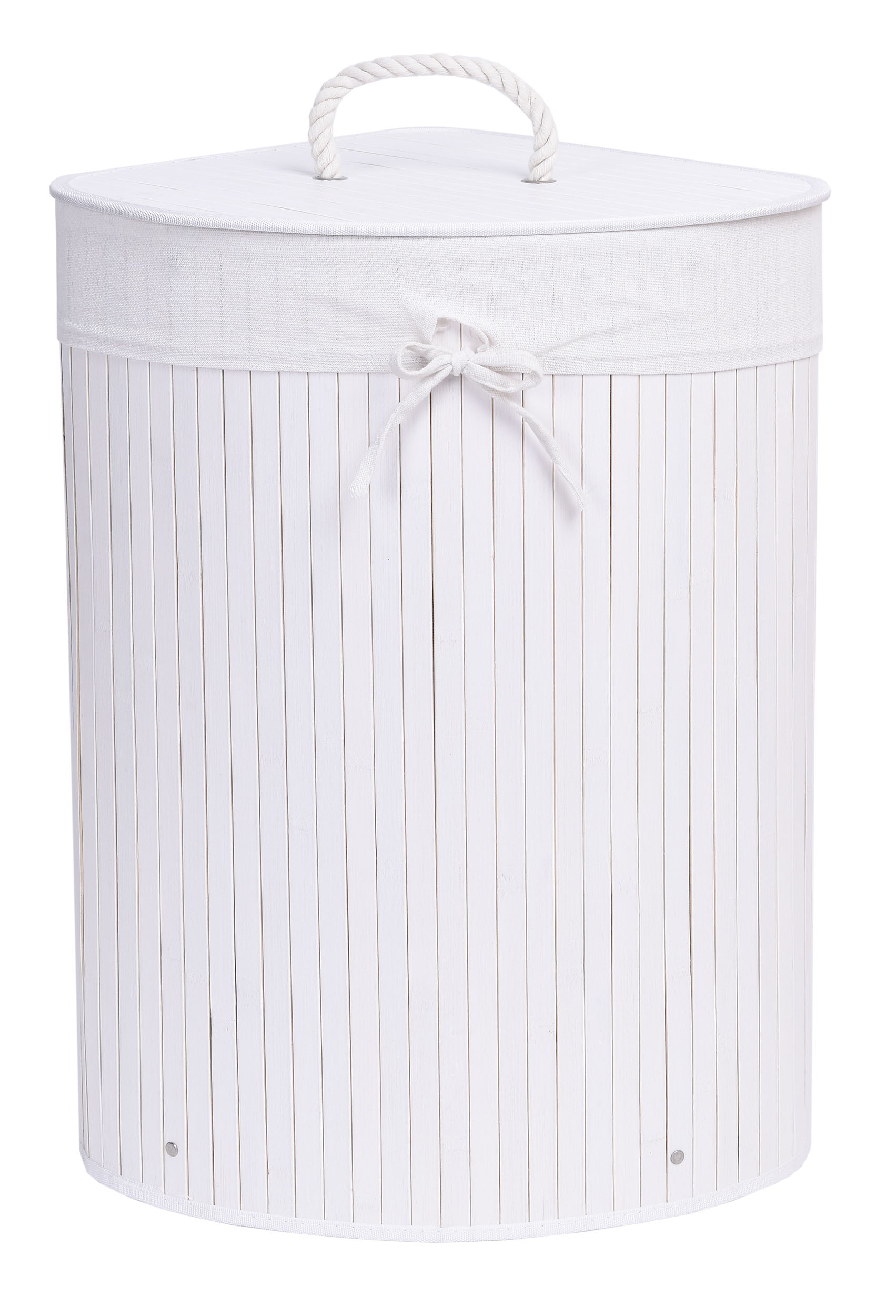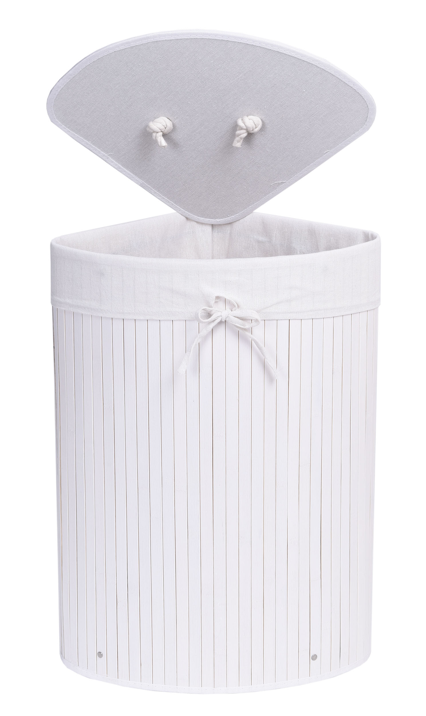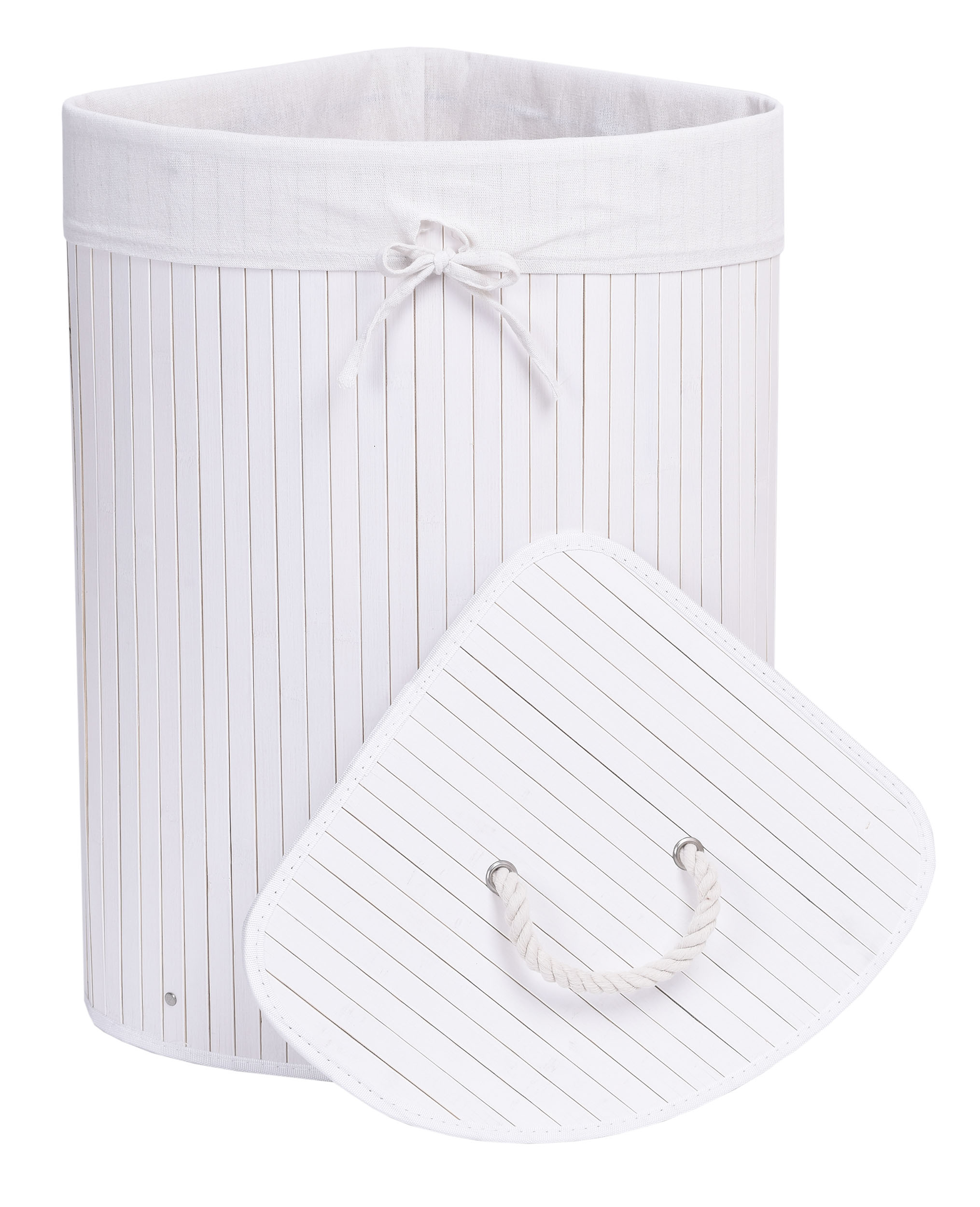 Kosz narożny na pranie bambusowy z pokrywą