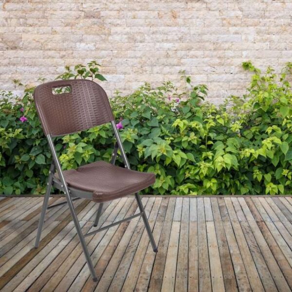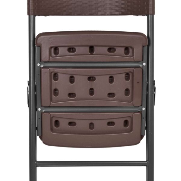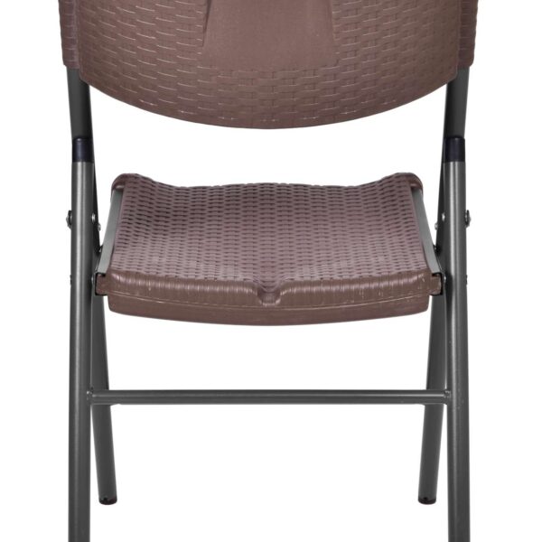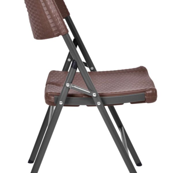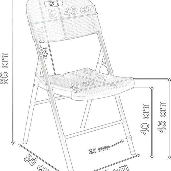 Krzesło wzorowane na rattan jest bardzo mocne i stabilne. Konstrukcja wykonana została ze stali oraz HDPE. Krzesło można składać dzięki temu jest łatwe w przenoszeniu i przechowywaniu. Odporne na promienie słoneczne.