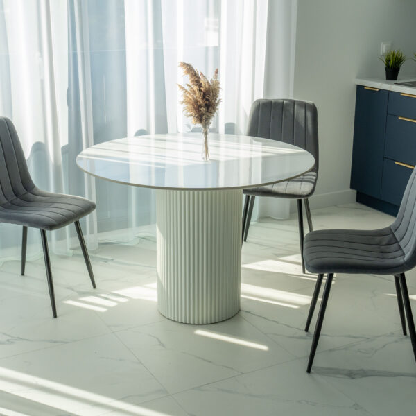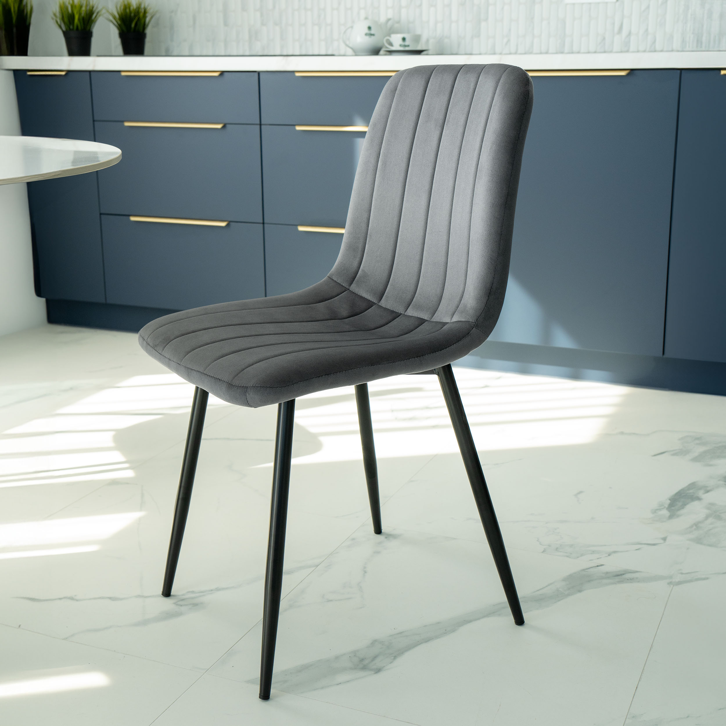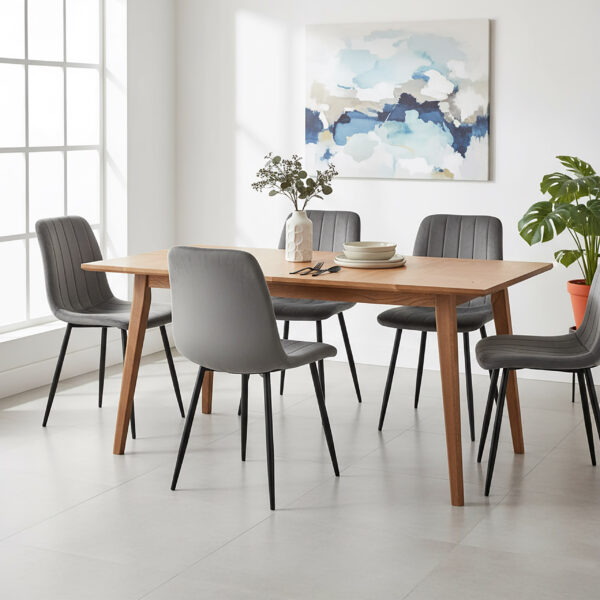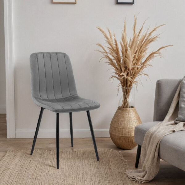 Krzesło Fresno to wyjątkowe krzesło zaprojektowane w stylu skandynawskim. Tapicerowane miękką aksamitną tkaniną z delikatnymi przeszyciami tworzącymi przyciągający wzrok wzór. Niezwykle wygodne o ergonomicznym kształcie. Nogi w kolorze czarnego matu. Idealnie dopełnią stylizację wnętrza. Model idealnie sprawdzi się w nowoczesnych pomieszczeniach dodając im blasku i świeżości. Atrakcyjny design i wzór sprawia, że krzesło doskonale sprawdzi się w jadalni, salonie czy garderobie.