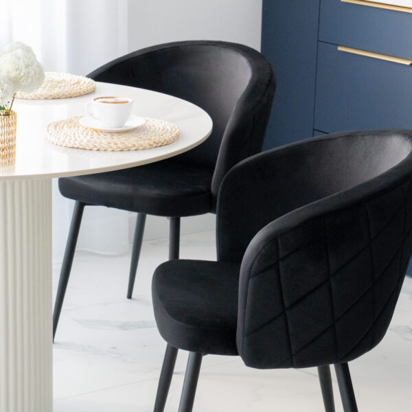 Nowoczesne, wygodne i funkcjonalne Krzesło Hampton z kolekcji Velvet to nowoczesne krzesło o wyjątkowym designie. Wykonane z materiałów najwyższej jakości z zachowaniem dbałości o najmniejsze detale. Siedzisko w wersji welurowej zostało obite przyjemnie miękkim materiałem typu velvet. Dzięki temu jest bardzo miękki w dotyku. Jednym z najbardziej charakterystycznych elementów krzesła Hampton są jego pikowane przeszycia, które tworzą ciekawy wzór kraty na oparciu. To piękny ozdobny detal. Model zapewnia odpowiednie podparcie pleców i komfort użytkowania. Nogi krzesła zostały wykonane ze stali malowanej proszkowo, co nie tylko nadaje im elegancki wygląd, ale także zapewnia wyjątkową trwałość i odporność. Ich głęboki, czarny kolor dodaje krzesłu wyrafinowanego charakteru, który doskonale komponuje się z różnymi stylami wnętrz. Krzesło welurowe Hampton to połączenie doskonałego designu i funkcjonalności. Doskonale sprawdzi się zarówno w nowoczesnych, jak i klasycznych wnętrzach, dodając im wyjątkowego uroku. Dzięki wysokiej jakości materiałom i starannemu wykonaniu to krzesło będzie służyć przez wiele lat, zapewniając niezrównany komfort i elegancję.
