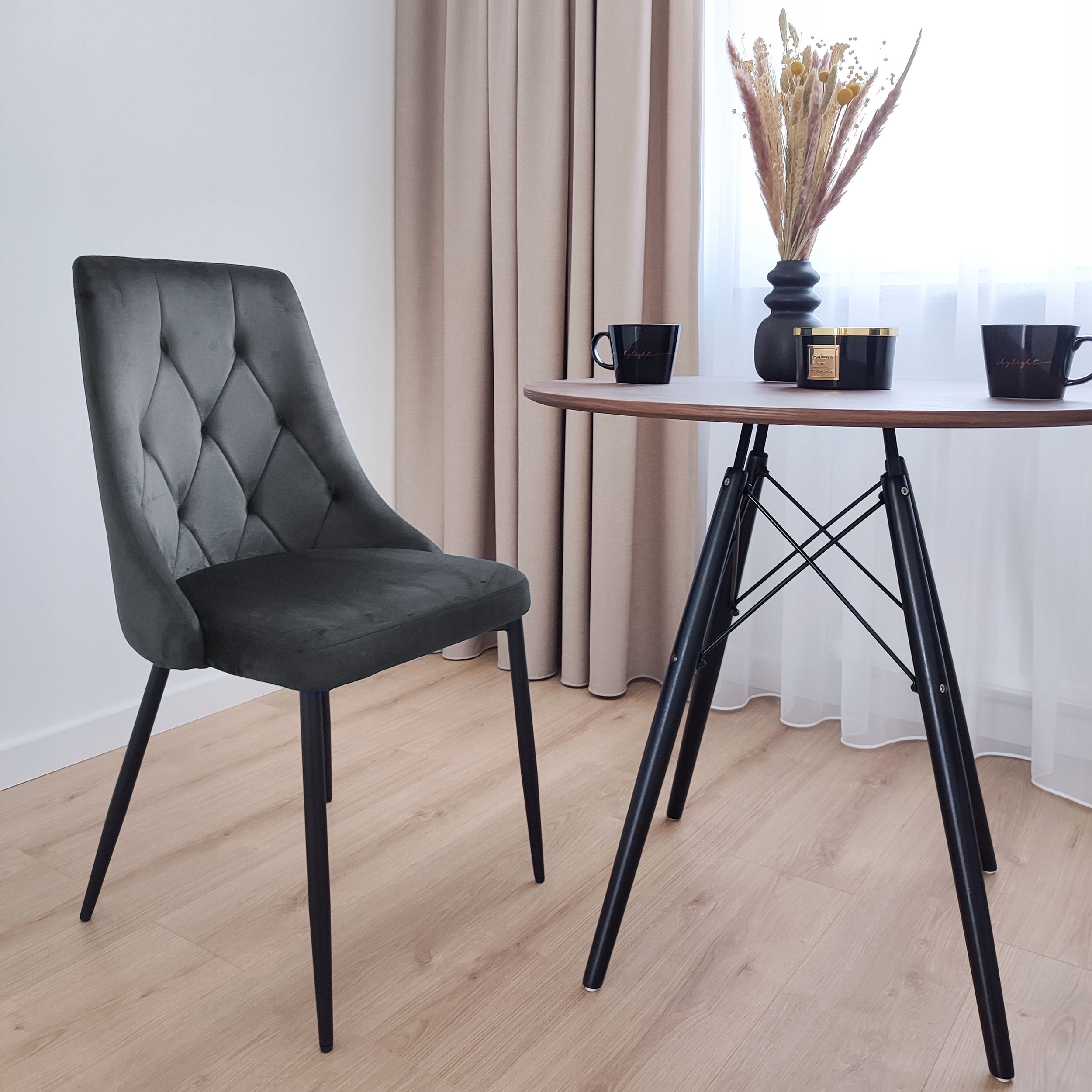 Krzesło LINCOLN VELVET tapicerowane grafitowy aksamit