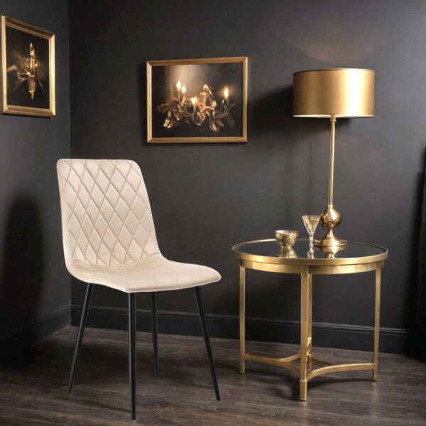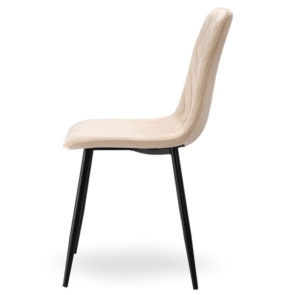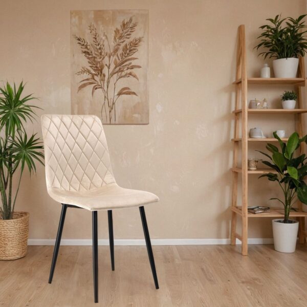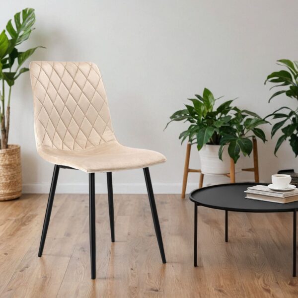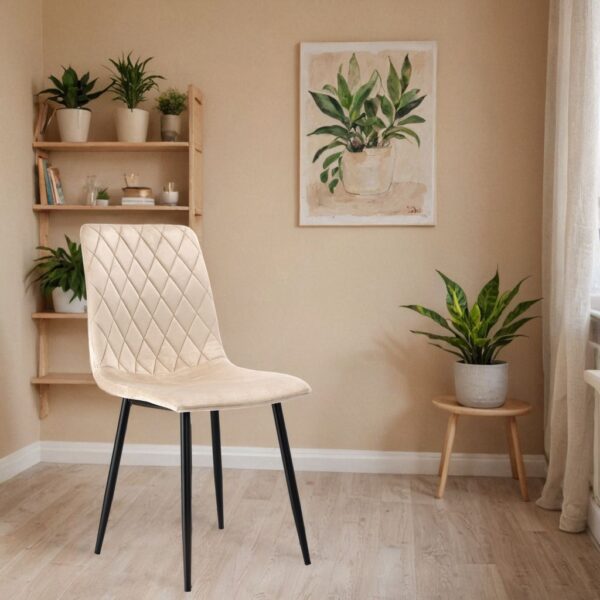 Krzesło Dexter to wyjątkowe krzesło, które doda blasku każdemu pomieszczeniu. Ma piękne oparcie z pikowanym, przykuwającym uwagę wzorem w karo. Wyjątkowe połączenie przyjemnego, aksamitnego materiału welurowego z metalowymi czarnymi nogami sprawi, że nikt nie przejdzie obok niego obojętnie. Krzesło bardzo wygodne, stabilne, z profilowanym oparciem. Odśwież swoje pomieszczenie już teraz! Dexter to praktyczne i komfortowe krzesło. Świetnie nada się do nowoczesnych salonów, kuchni, restauracji, barów, ekskluzywnych sklepów, salonów kosmetycznych/fryzjerskich, eleganckich biur, stoisk na targach, punktów informacyjnych.