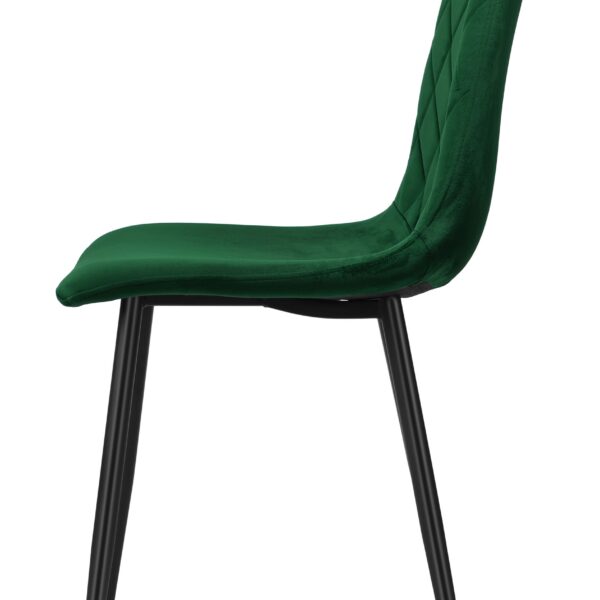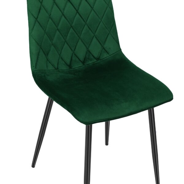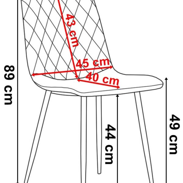 Krzesło Dexter to wyjątkowe krzesło, które doda blasku każdemu pomieszczeniu. Ma piękne oparcie z pikowanym, przykuwającym uwagę wzorem w karo. Wyjątkowe połączenie przyjemnego, aksamitnego materiału welurowego z metalowymi czarnymi nogami sprawi, że nikt nie przejdzie obok niego obojętnie. Krzesło bardzo wygodne, stabilne, z profilowanym oparciem. Odśwież swoje pomieszczenie już teraz! Dexter to praktyczne i komfortowe krzesło. Świetnie nada się do nowoczesnych salonów, kuchni, restauracji, barów, ekskluzywnych sklepów, salonów kosmetycznych/fryzjerskich, eleganckich biur, stoisk na targach, punktów informacyjnych.