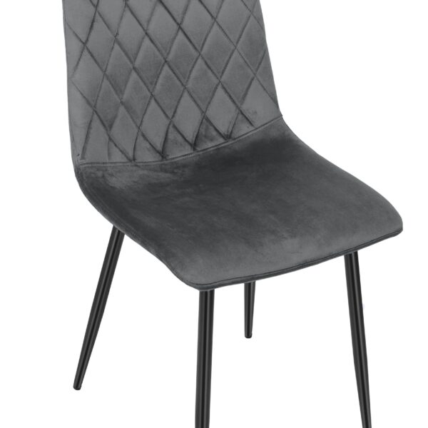 Krzesło Dexter to wyjątkowe krzesło, które doda blasku każdemu pomieszczeniu. Ma piękne oparcie z pikowanym, przykuwającym uwagę wzorem w karo. Wyjątkowe połączenie przyjemnego, aksamitnego materiału welurowego z metalowymi czarnymi nogami sprawi, że nikt nie przejdzie obok niego obojętnie. Krzesło bardzo wygodne, stabilne, z profilowanym oparciem. Odśwież swoje pomieszczenie już teraz! Dexter to praktyczne i komfortowe krzesło. Świetnie nada się do nowoczesnych salonów, kuchni, restauracji, barów, ekskluzywnych sklepów, salonów kosmetycznych/fryzjerskich, eleganckich biur, stoisk na targach, punktów informacyjnych.