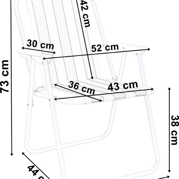Wygodne i stabilne krzesełko turystyczne, idealne na działkę, plażę lub kemping. Fotel jest składany i po złożeniu zajmuje mało miejsca, dzięki czemu łatwo się go transportuje na miejsce wypoczynku. Wytrzymała konstrukcja została wykonana ze stalowych rurek malowanych proszkowo.