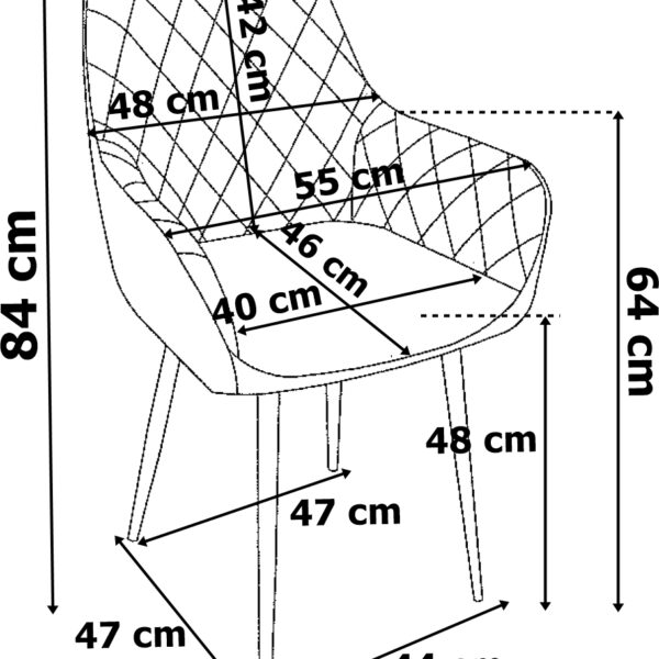 Tapicerowane i pikowane krzesło z ciekawym, pikowanym wzorem. Ciekawy i wyrazisty wzór, który idealne wkomponuje się do wnętrz w stylistyce loft lub glamour, nadając nieco ciepłego wyrazu. Siedzisko jest wyprofilowane i zapewnia komfortowe oparcie dla pleców. Metalowy stelaż krzesła zapewnia stabilne podparcie na każdej powierzchni. Kupując u nas, kupujesz od bezpośredniego producenta!