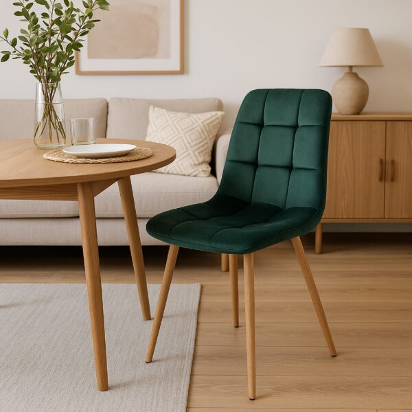 Nowoczesne krzesło Montana welurowe w odcieniu ciemnozielonym to idealne połączenie komfortu, elegancji i funkcjonalności. Sprawdzi się zarówno w jadalni, salonie, jak i domowym biurze, zapewniając wygodne miejsce do siedzenia podczas posiłków i spotkań. Dzięki miękkiej tapicerce, profilowanemu oparciu oraz lekkiej, ale stabilnej konstrukcji, zyskujesz mebel, który nie tylko pięknie wygląda, ale też służy przez lata. Obiekcje dotyczące stabilności i trwałości rozwiewa metalowy stelaż z drewnopodobnym wykończeniem, a łatwe w czyszczeniu obicie to odpowiedź na troskę o praktyczność.