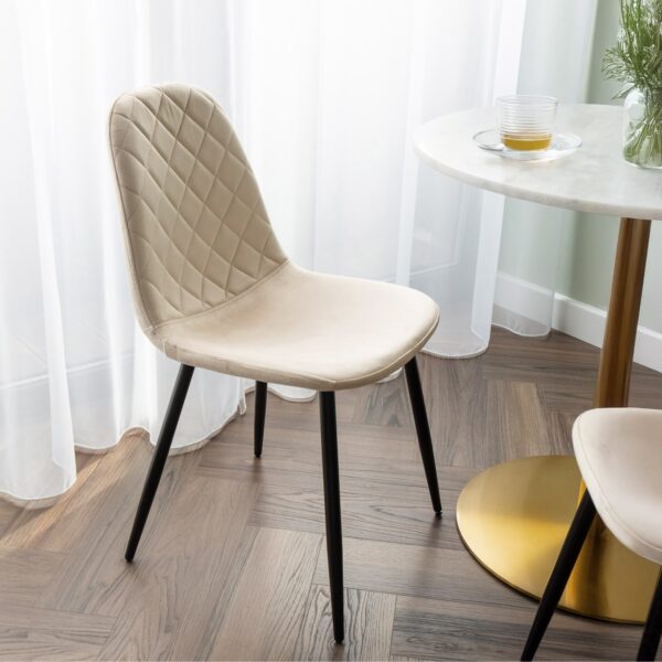 Unikalne krzesło Orlando wyróżnia się nowoczesnym designem i nietuzinkowym połączeniem miękkiego weluru oraz metalowych nóg. Wykonane z najwyższej jakości materiałów, z dbałością o każdy detal, z pewnością przyciągnie uwagę swoim geometrycznym, pikowanym wzorem w kształcie rombów. Krzesło Orlando to nie tylko designerski element dekoracyjny, ale także bardzo wygodne meble, idealne do nowoczesnych wnętrz w stylu loftowym i nowoczesnym. Doskonale sprawdzi się w salonach, restauracjach, ekskluzywnych sklepach, salonach kosmetycznych/fryzjerskich, eleganckich biurach czy punktach informacyjnych. Połączenie weluru i metalowych nóg doda pomieszczeniu nutę elegancji i niepowtarzalnego charakteru.