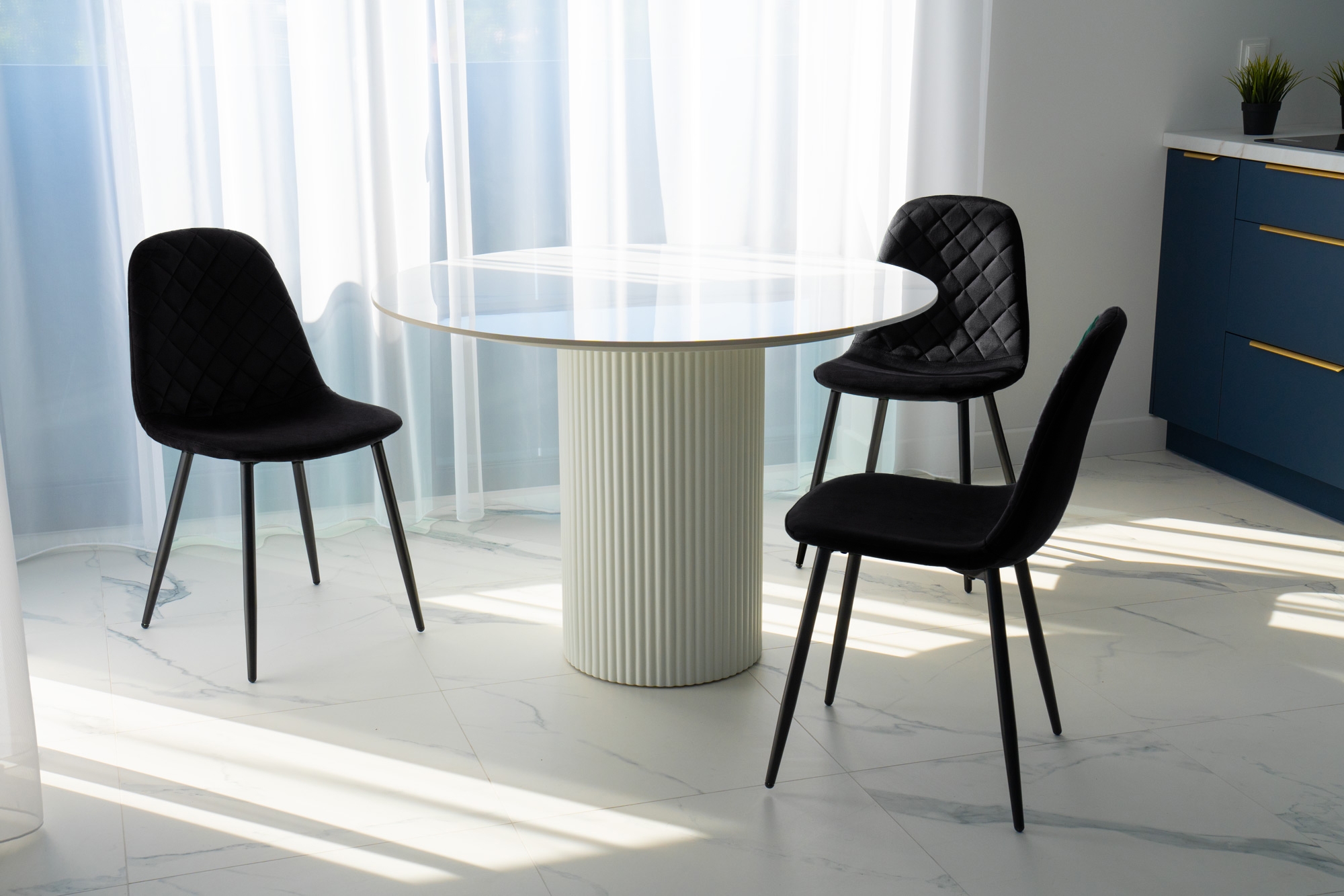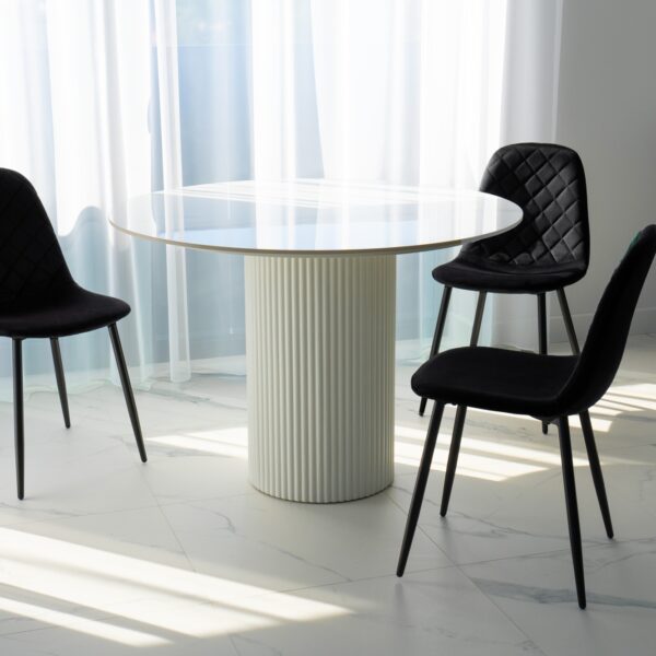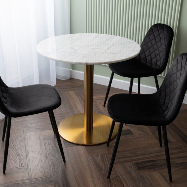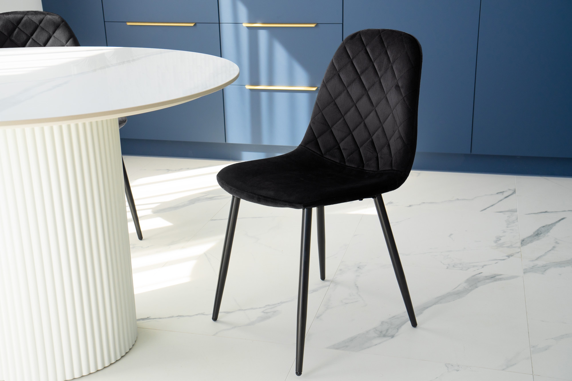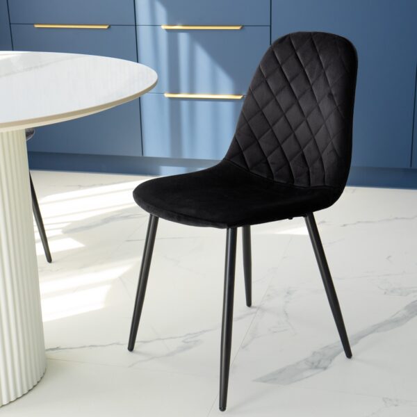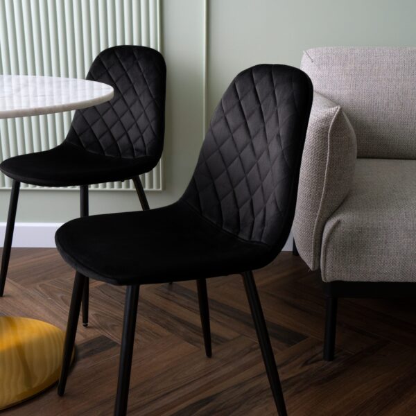 Unikalne krzesło Orlando wyróżnia się nowoczesnym designem i nietuzinkowym połączeniem miękkiego weluru oraz metalowych nóg. Wykonane z najwyższej jakości materiałów, z dbałością o każdy detal, z pewnością przyciągnie uwagę swoim geometrycznym, pikowanym wzorem w kształcie rombów. Krzesło Orlando to nie tylko designerski element dekoracyjny, ale także bardzo wygodne meble, idealne do nowoczesnych wnętrz w stylu loftowym i nowoczesnym. Doskonale sprawdzi się w salonach, restauracjach, ekskluzywnych sklepach, salonach kosmetycznych/fryzjerskich, eleganckich biurach czy punktach informacyjnych. Połączenie weluru i metalowych nóg doda pomieszczeniu nutę elegancji i niepowtarzalnego charakteru.