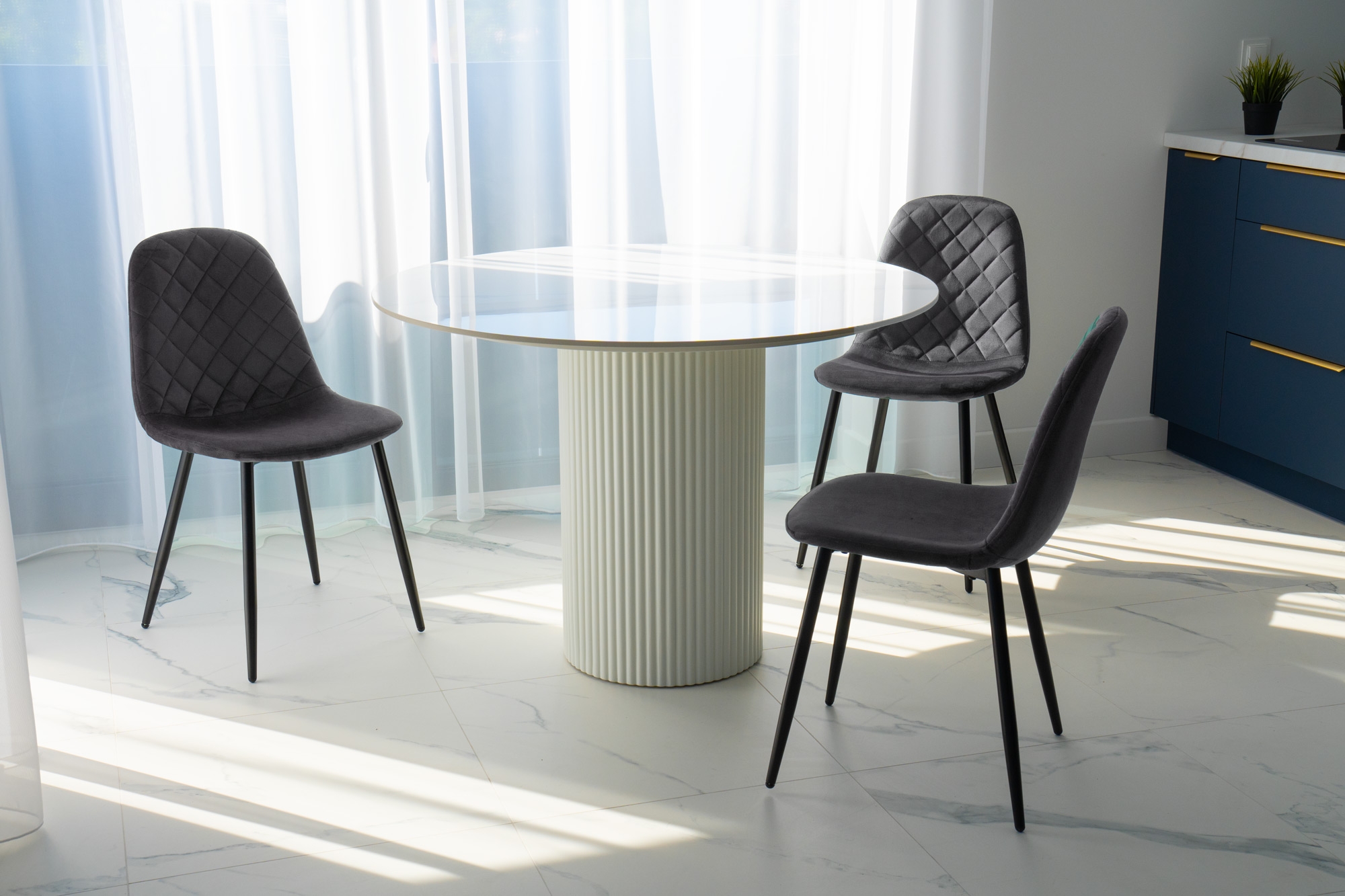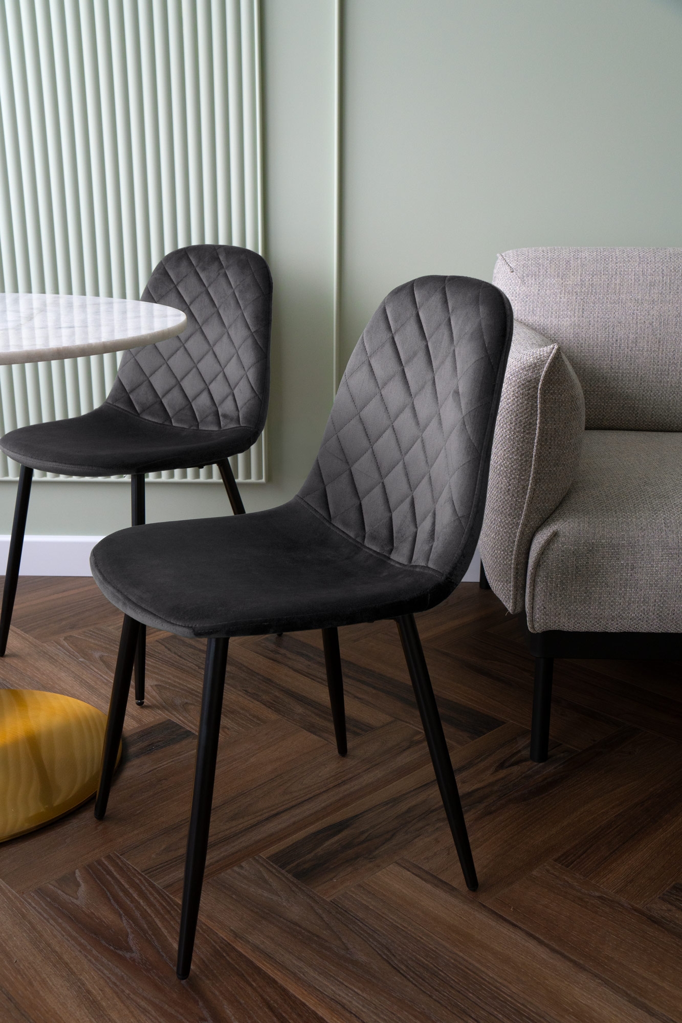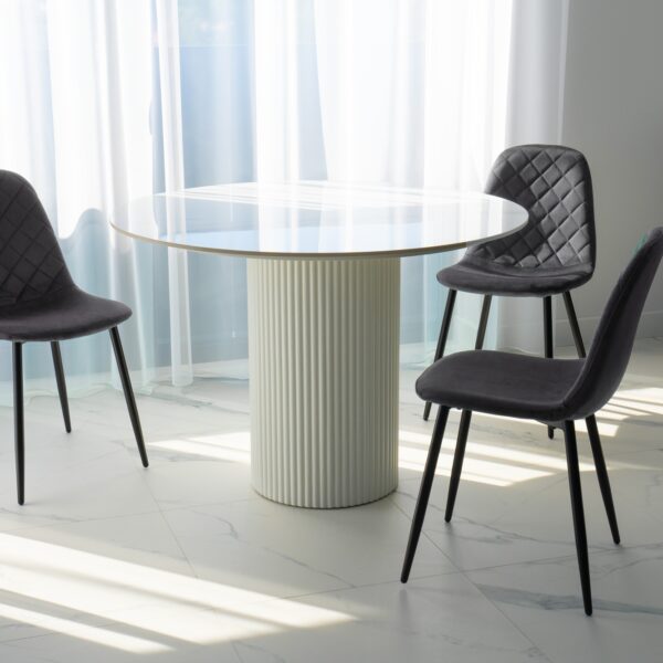 Unikalne krzesło Orlando wyróżnia się nowoczesnym designem i nietuzinkowym połączeniem miękkiego weluru oraz metalowych nóg. Wykonane z najwyższej jakości materiałów, z dbałością o każdy detal, z pewnością przyciągnie uwagę swoim geometrycznym, pikowanym wzorem w kształcie rombów. Krzesło Orlando to nie tylko designerski element dekoracyjny, ale także bardzo wygodne meble, idealne do nowoczesnych wnętrz w stylu loftowym i nowoczesnym. Doskonale sprawdzi się w salonach, restauracjach, ekskluzywnych sklepach, salonach kosmetycznych/fryzjerskich, eleganckich biurach czy punktach informacyjnych. Połączenie weluru i metalowych nóg doda pomieszczeniu nutę elegancji i niepowtarzalnego charakteru.
