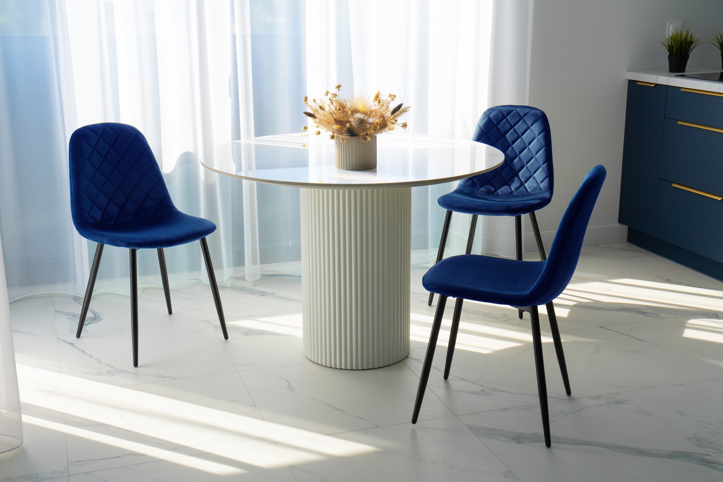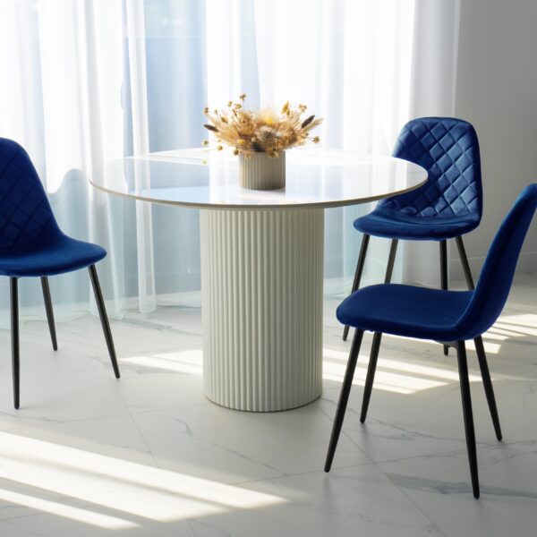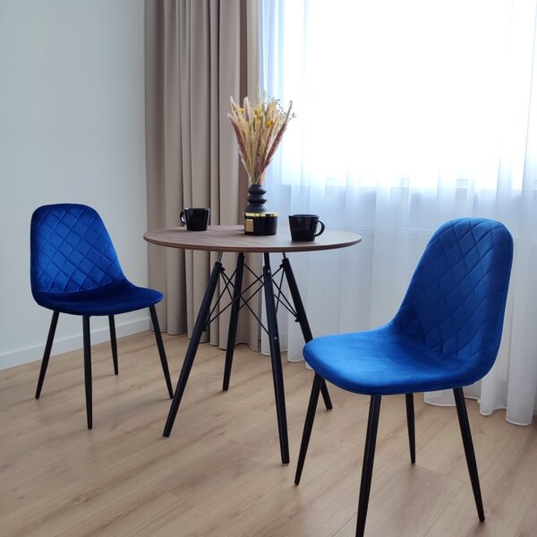 Unikalne krzesło Orlando wyróżnia się nowoczesnym designem i nietuzinkowym połączeniem miękkiego weluru oraz metalowych nóg. Wykonane z najwyższej jakości materiałów, z dbałością o każdy detal, z pewnością przyciągnie uwagę swoim geometrycznym, pikowanym wzorem w kształcie rombów. Krzesło Orlando to nie tylko designerski element dekoracyjny, ale także bardzo wygodne meble, idealne do nowoczesnych wnętrz w stylu loftowym i nowoczesnym. Doskonale sprawdzi się w salonach, restauracjach, ekskluzywnych sklepach, salonach kosmetycznych/fryzjerskich, eleganckich biurach czy punktach informacyjnych. Połączenie weluru i metalowych nóg doda pomieszczeniu nutę elegancji i niepowtarzalnego charakteru.