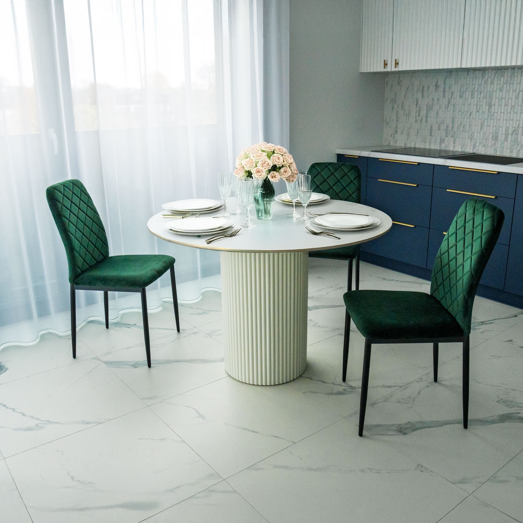 Krzesło Maverik łączy nowoczesny styl z wysokim komfortem użytkowania. Wykonane z aksamitnej tkaniny welurowej i osadzone na eleganckich, matowych metalowych nogach, dodaje wnętrzom luksusowego charakteru. Sprawdzi się w kuchni, jadalni, salonie czy biurze, oferując nie tylko elegancję, ale także wygodę. Wybierając krzesło Maverik, zyskujesz styl oraz funkcjonalność, co czyni je doskonałym rozwiązaniem do współczesnych wnętrz.