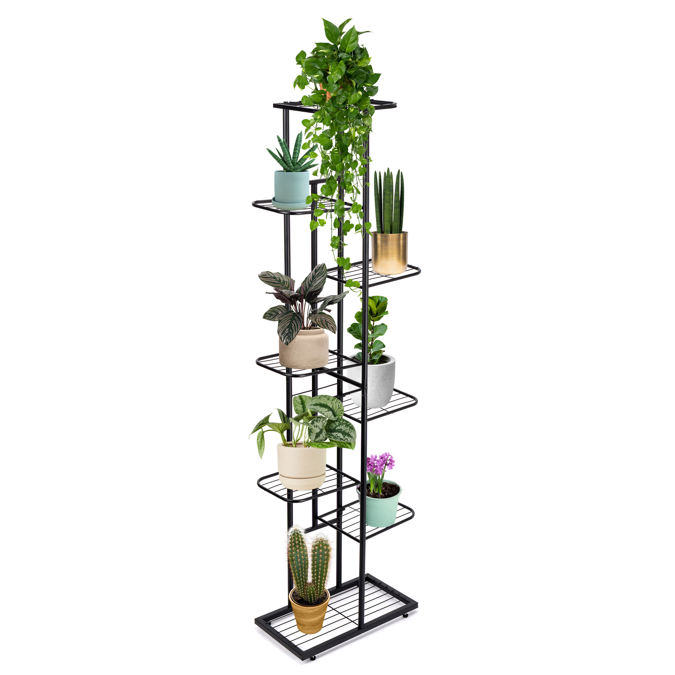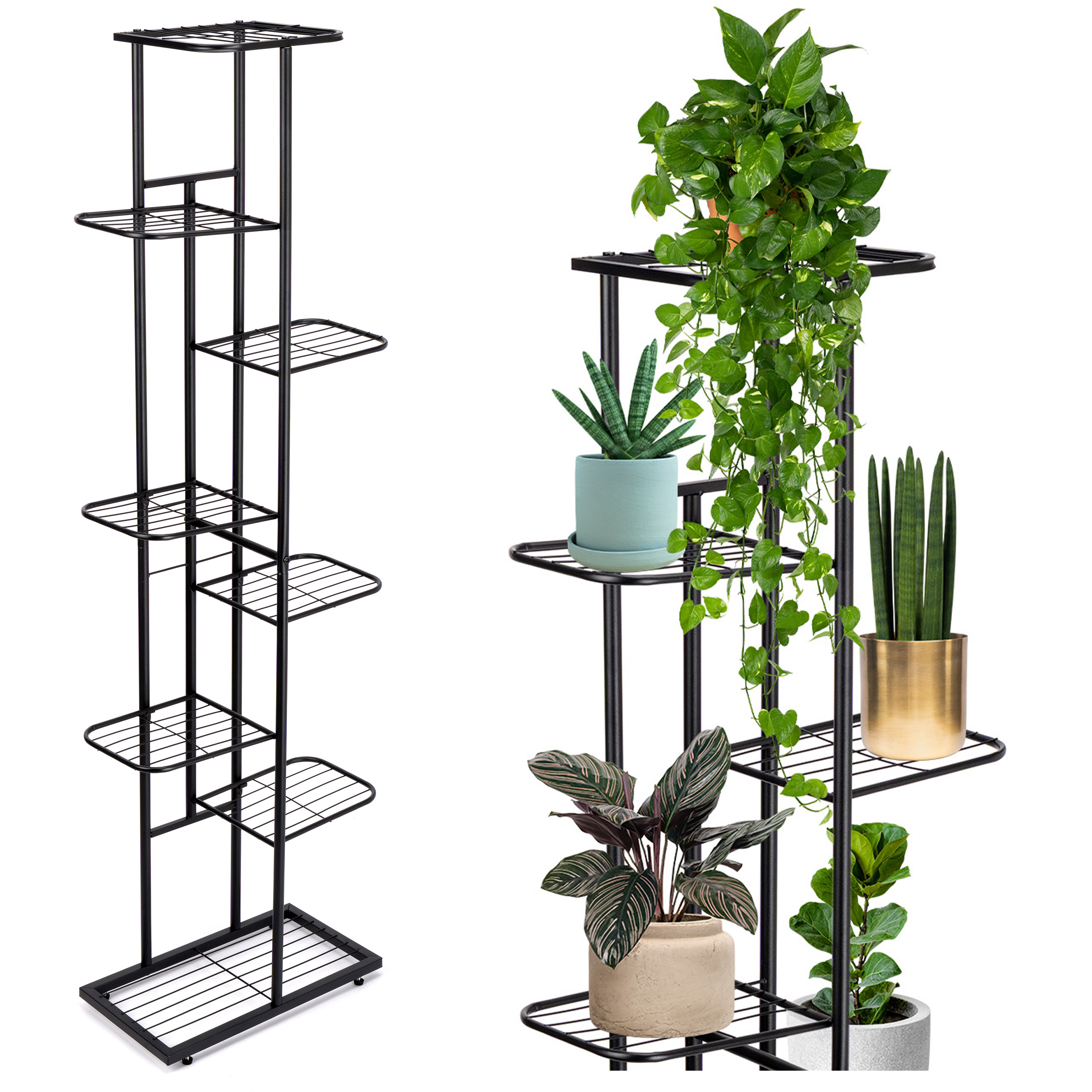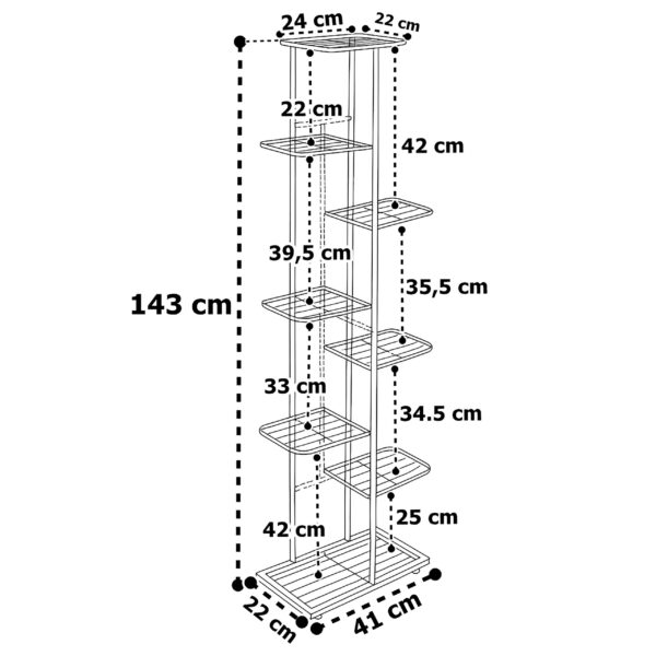 Kwietnik NEST to funkcjonalna dekoracja, która pozwoli Ci wyeksponować aż 8 roślin w jednym miejscu, nie zajmując dużo przestrzeni. Dzięki ponadczasowej czerni i nowoczesnej formie idealnie wpisuje się w każde wnętrze – od salonu po balkon. Zyskujesz nie tylko ład i porządek, ale także przytulną atmosferę z nutą stylowej elegancji. Stalowa konstrukcja zapewnia stabilność, a kompaktowe rozmiary pomagają zaoszczędzić miejsce, nawet w małych pomieszczeniach.