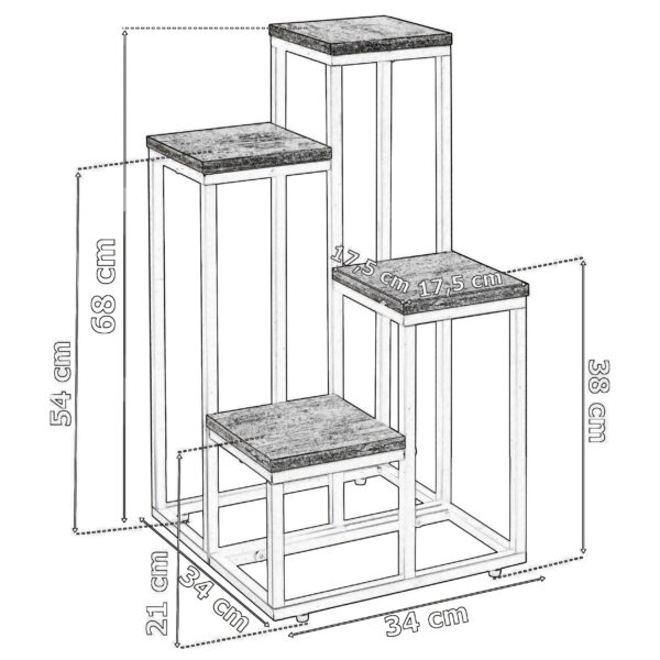 Wysokość półek: 21 cm, 38 cm, 54 cm, 68 cm