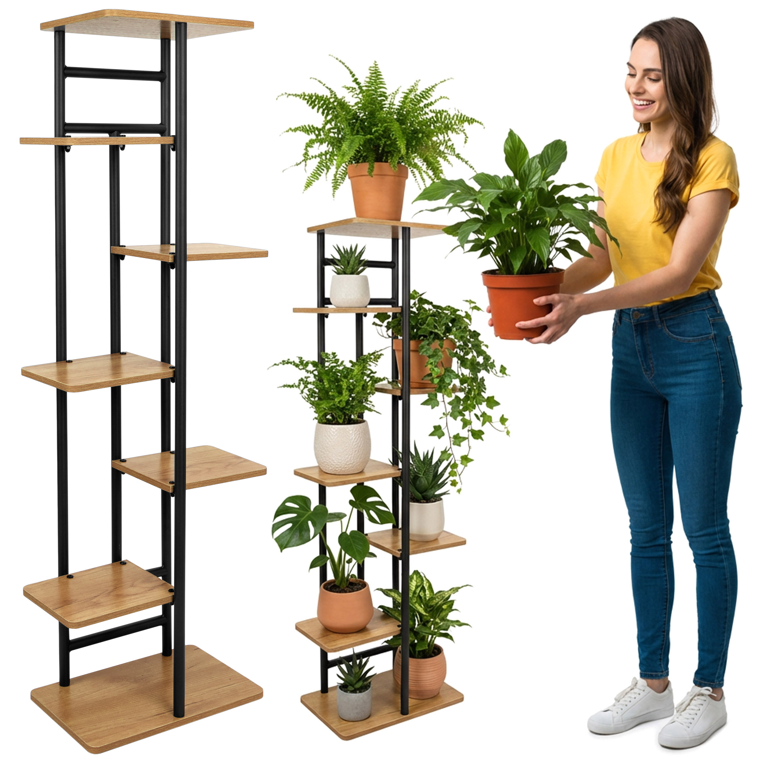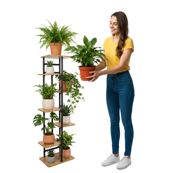 Kwietnik Bastian Craft to praktyczne i stylowe rozwiązanie, które pomaga uporządkować przestrzeń i efektownie zaprezentować rośliny w domu lub biurze. Umożliwia jednoczesną ekspozycję kilku doniczek, bez konieczności zajmowania miejsca na podłodze. Pionowa forma oraz nowoczesny wygląd sprawiają, że wnętrze zyskuje więcej zieleni, harmonijny układ i estetykę zgodną z aktualnymi trendami aranżacyjnymi.