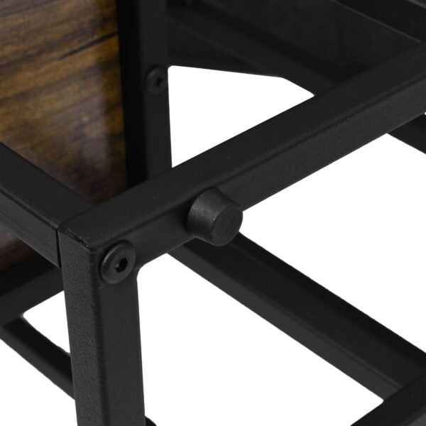 Munir to stabilny i solidny kwietnik wykonany z profili stalowych, pomalowanych proszkowo na matowy czarny kolor oraz z płyty laminowanej w odcieniu postarzanego dębu. Jego prosty, a zarazem atrakcyjny design, idealnie wpasuje się w każde nowoczesne wnętrze urządzone w stylu loftowym, klasycznym lub industrialnym. Kwietnik posiada wytrzymałą stalową konstrukcję oraz stabilne półki, które bez trudu udźwigną nawet ciężkie donice z roślinami i dekoracjami. Dodatkowo wyposażony jest w ochronne podkładki z możliwością regulacji poziomu. Wszystkie elementy zostały wykonane z najwyższej jakości materiałów, dbając o najdrobniejsze detale. Munir to idealna propozycja dla miłośników kwiatów, którzy chcą podkreślić ich piękno i wyjątkowe walory. Kwietnik ten z pewnością przyciągnie uwagę, dzięki swojej solidnej konstrukcji i ciekawemu wzornictwu, które robi wrażenie na każdym z gości.