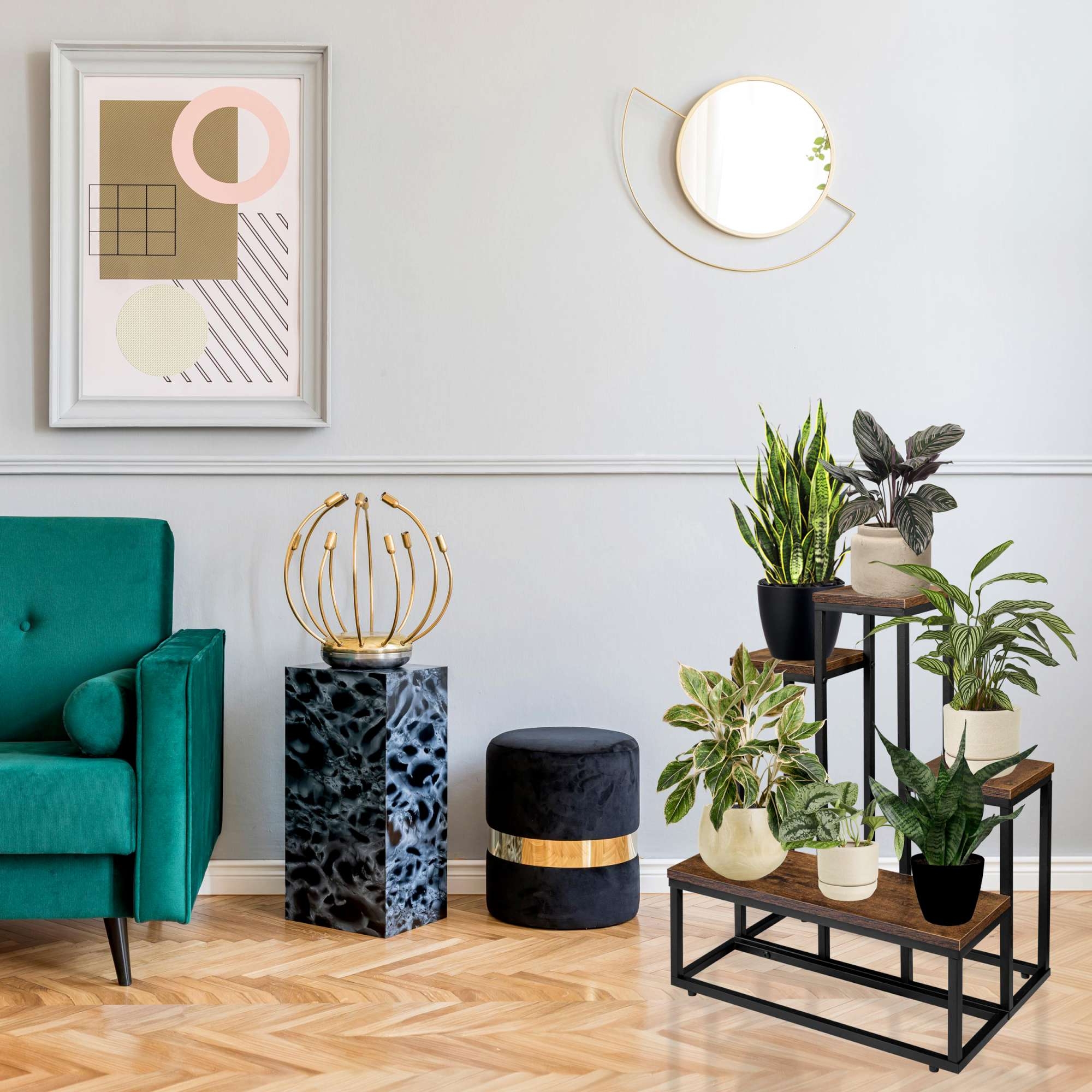 Przeznaczenie: stojak kwietnik na rośliny, dodatki do wnętrz | Kolory: czarny, postarzany dąb