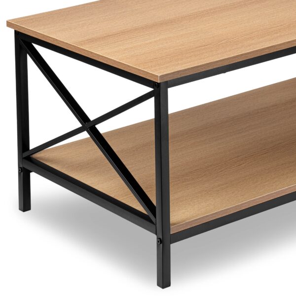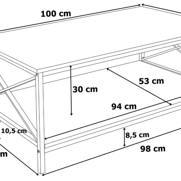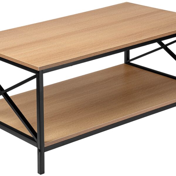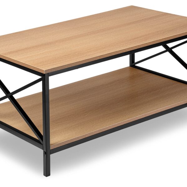 Herning to świetny przykład mebla praktycznego i wyróżniającego się wyjątkowym designem. Solidna konstrukcja ze stali malowanej proszkowo i laminowana płyta w kolorze modern oak świetnie się łączą, tworząc ławę kawową o nowoczesnym wzornictwie. Model doskonale sprawdzi się jako stolik kawowy w oryginalnie urządzonych salonach. Idealnie pasuje do stylu loftowego, industrialnego i vintage. Herning został wykonany z materiałów najwyższej jakości z zachowaniem dbałości o najmniejsze szczegóły. Model wyróżnia się atrakcyjnym designem, dużą powierzchnią blatu i solidnym wykonaniem. Przestronny blat zapewnia wystarczająco dużo miejsca na np: filiżanki do kawy, laptopa, ulubioną książkę czy tacę z przekąskami. Dolna półka równie obszerna, może służyć do przechowywania reszty najpotrzebniejszych akcesoriów.