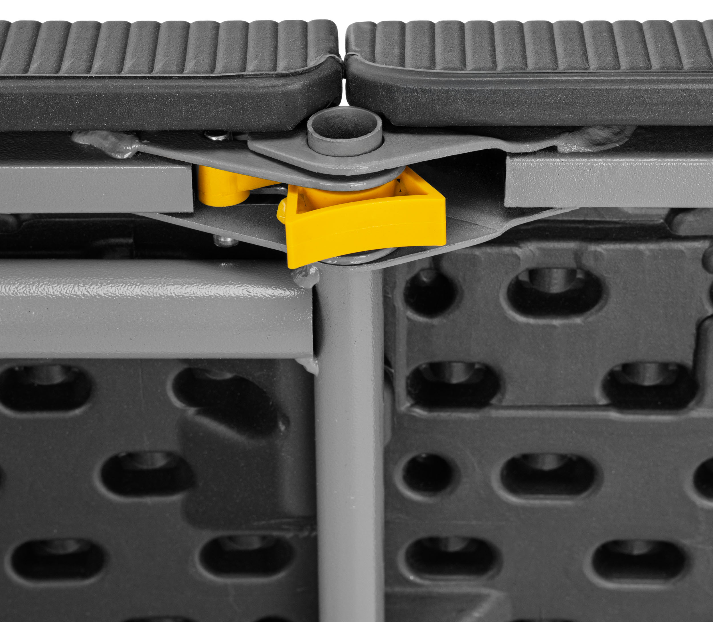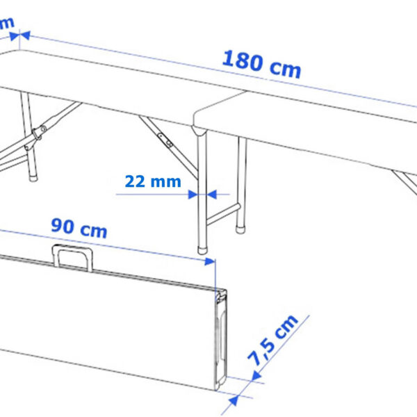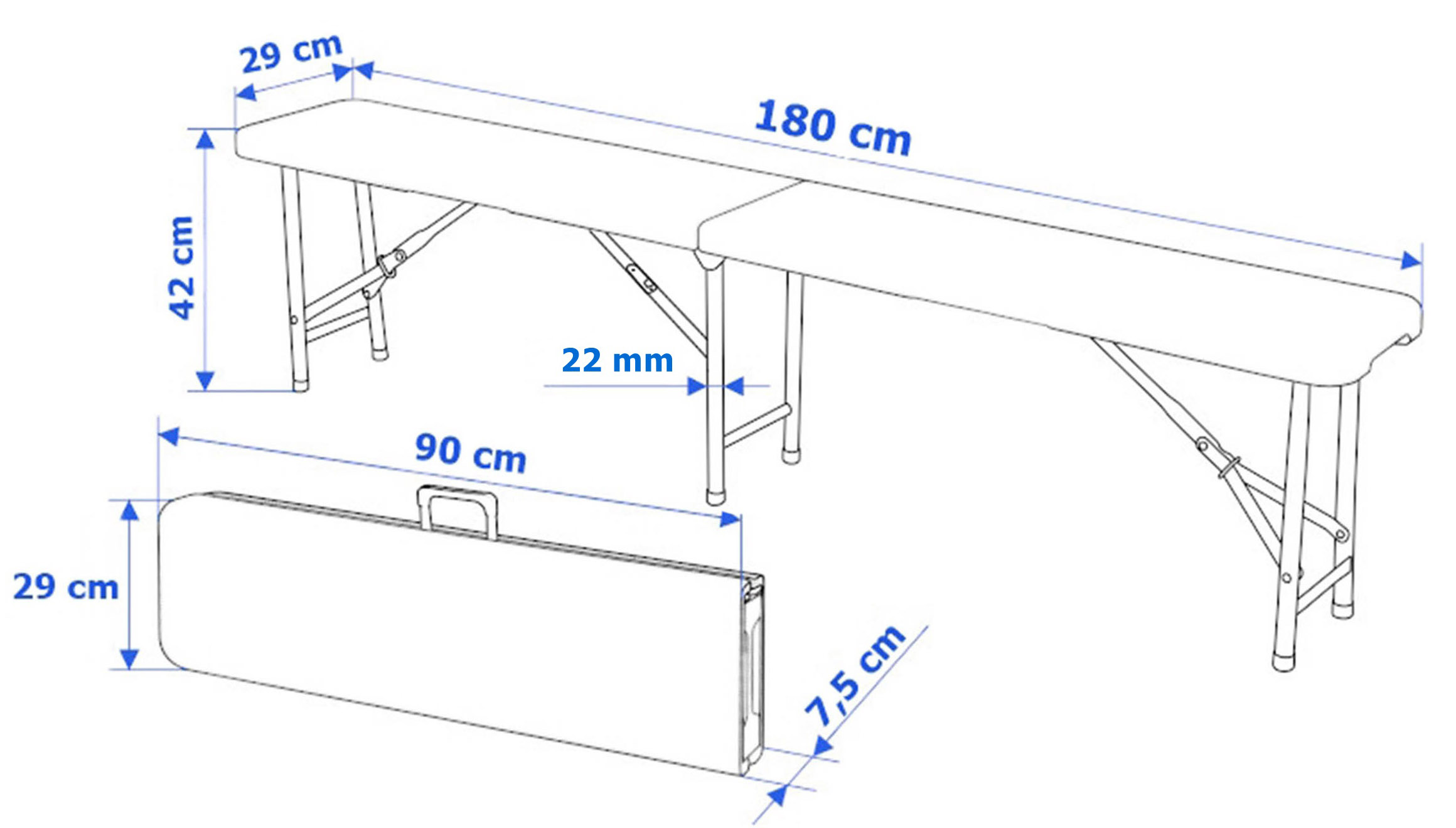 Składana ławka cateringowa jest bardzo praktyczna oraz wytrzymała. Konstrukcja wykonana ze stali malowanej proszkowo. Siedzisko wykonane z polietylenu HDPE. Wzorowane na rattan. Odporna na promienie słoneczne. Dzięki unikalnemu projektowi całość konstrukcji chowa się w siedzisko ławki, zajmując mało miejsca i tworząc ergonomiczną walizkę, łatwą do przenoszenia.