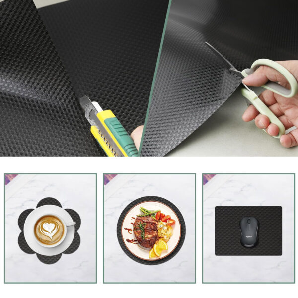 Mata antypoślizgowa Halve 48 × 500 cm to funkcjonalne i estetyczne rozwiązanie, które pomaga utrzymać porządek oraz chronić powierzchnie w szufladach, na półkach czy w innych miejscach wymagających stabilności. Zabezpiecza przed przesuwaniem się przedmiotów, ogranicza hałas przy otwieraniu i zamykaniu szuflad, a także zwiększa komfort codziennego użytkowania mebli. Dużym atutem maty jest możliwość dowolnego przycięcia, dzięki czemu łatwo dopasujesz ją do konkretnej przestrzeni. Koniec ze ślizgającymi się akcesoriami i ciągłym porządkowaniem – mata Halve utrzyma wszystko na swoim miejscu, zapewniając wygodę i porządek każdego dnia.
