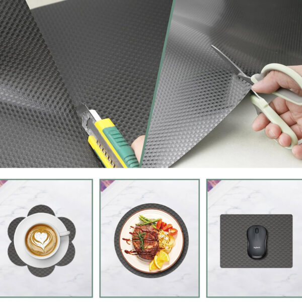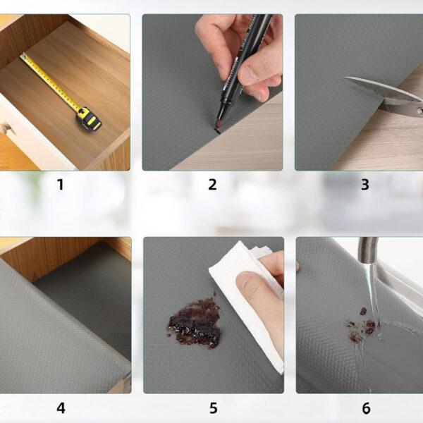 Mata antypoślizgowa Halve 48 × 500 cm to funkcjonalne i estetyczne rozwiązanie, które pomaga utrzymać porządek oraz chronić powierzchnie w szufladach, na półkach czy w innych miejscach wymagających stabilności. Zabezpiecza przed przesuwaniem się przedmiotów, ogranicza hałas przy otwieraniu i zamykaniu szuflad, a także zwiększa komfort codziennego użytkowania mebli. Dużym atutem maty jest możliwość dowolnego przycięcia, dzięki czemu łatwo dopasujesz ją do konkretnej przestrzeni. Koniec ze ślizgającymi się akcesoriami i ciągłym porządkowaniem – mata Halve utrzyma wszystko na swoim miejscu, zapewniając wygodę i porządek każdego dnia.