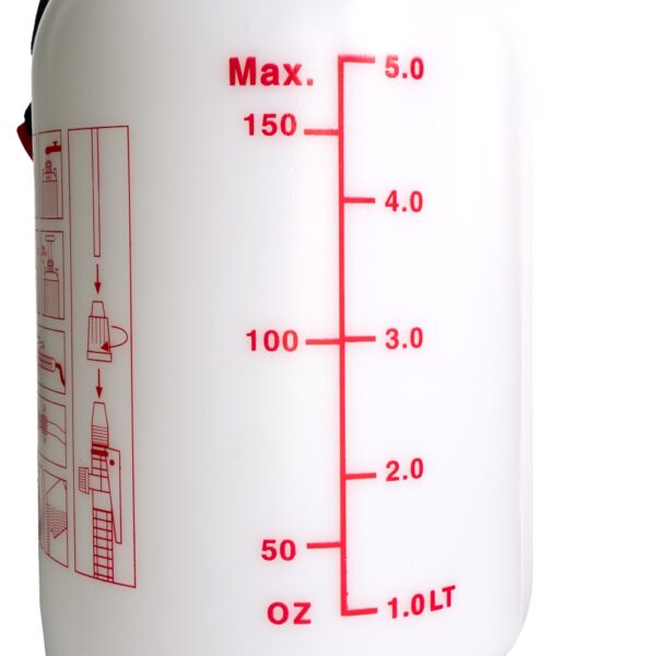 Opryskiwacz posiada dużą, czytelną miarkę, która umożliwia precyzyjne odmierzenie odpowiedniej ilości środka chemicznego. Dzięki temu można bezpiecznie rozcieńczyć preparat z wodą bez potrzeby używania dodatkowych naczyń. Precyzyjne dawkowanie nie tylko zwiększa wygodę pracy, ale także poprawia bezpieczeństwo roślin, chroniąc je przed nadmiernym stężeniem środków chemicznych.