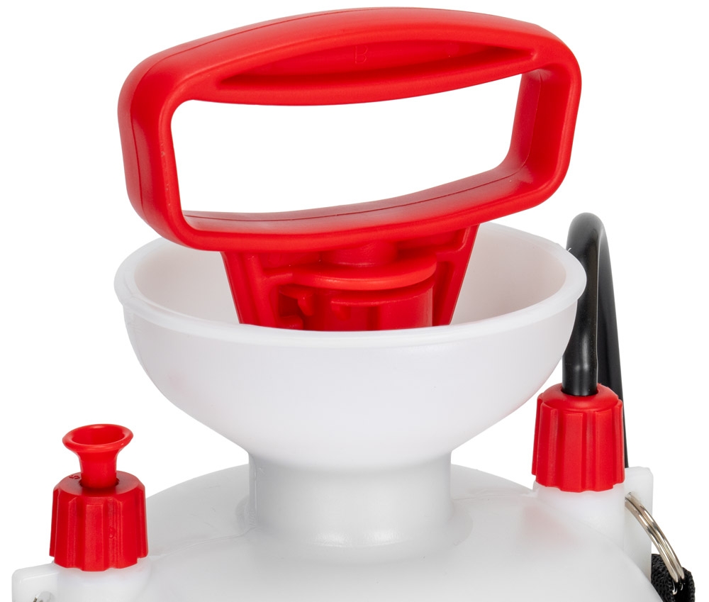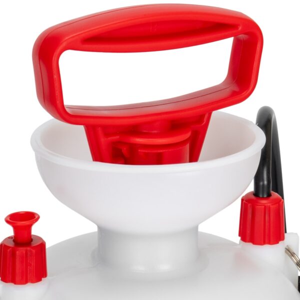 Opryskiwacz wyposażony jest w szeroki lejek, który znacząco upraszcza proces napełniania i minimalizuje ryzyko rozlania substancji chemicznych. Dzięki temu użytkownik może szybko i bezpiecznie napełnić zbiornik, co zwiększa komfort pracy od samego początku.