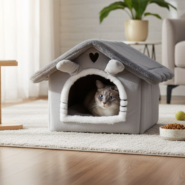 ✅ Pluszowy i przytulny: Miły w dotyku materiał sprawia, że domek jest niezwykle komfortowy dla kota.