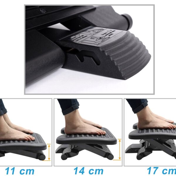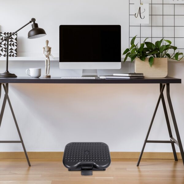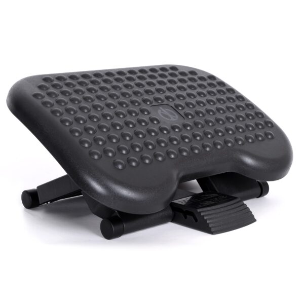 Stosując podnóżek dbasz nie tylko o ergonomię i komfort pracy, ale i o swoje zdrowie. Podnóżek gwarantuje prawidłową postawę, i odpowiednie podparcie kończyn dolnych, przez co wszelkie dolegliwości związane np z bólem kręgosłupa przestają być uciążliwe. Dzięki podnóżkowi poprawisz krążenie kończyn dolnych i złagodzisz bóle związane z opuchniętymi nogami i żylakami. Platforma posiada wystające wypustki, które dodatkowo masują Twoje stopy, niwelując stres i odprężając Cię w czasie pracy. W modelu można regulować wysokość i kąt nachylenia. Dodatkowo posiada antypoślizgowe nóżki gwarantujące jego stabilność.