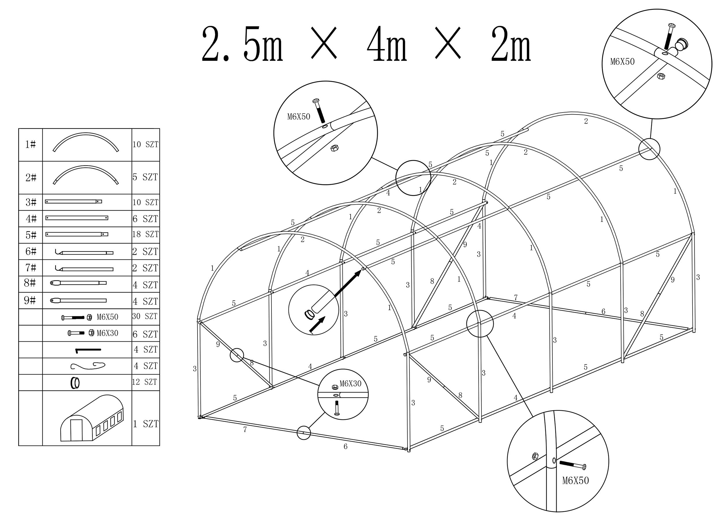 Pokrycie na tunel foliowy szklarnię ogrodową 2,5×4 m