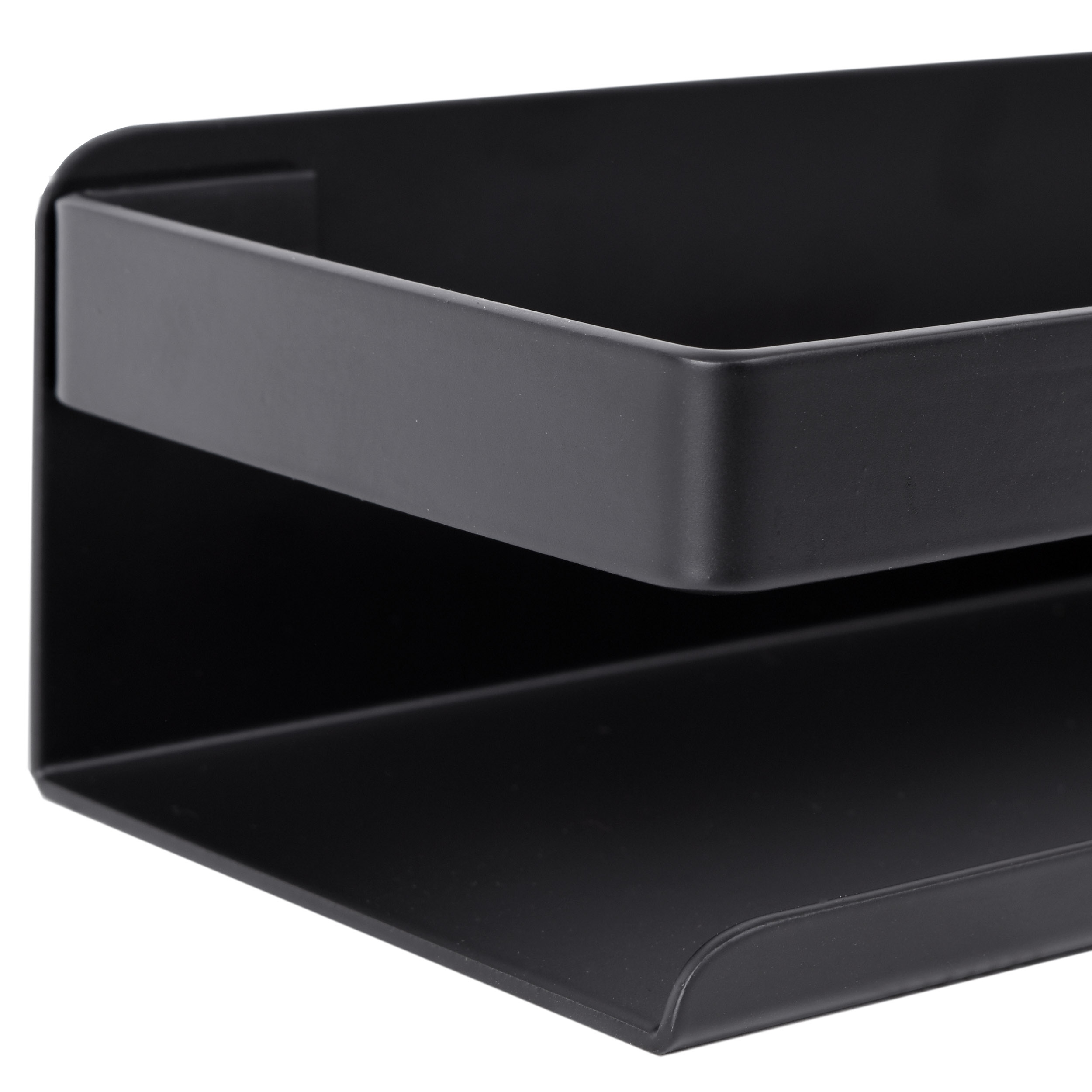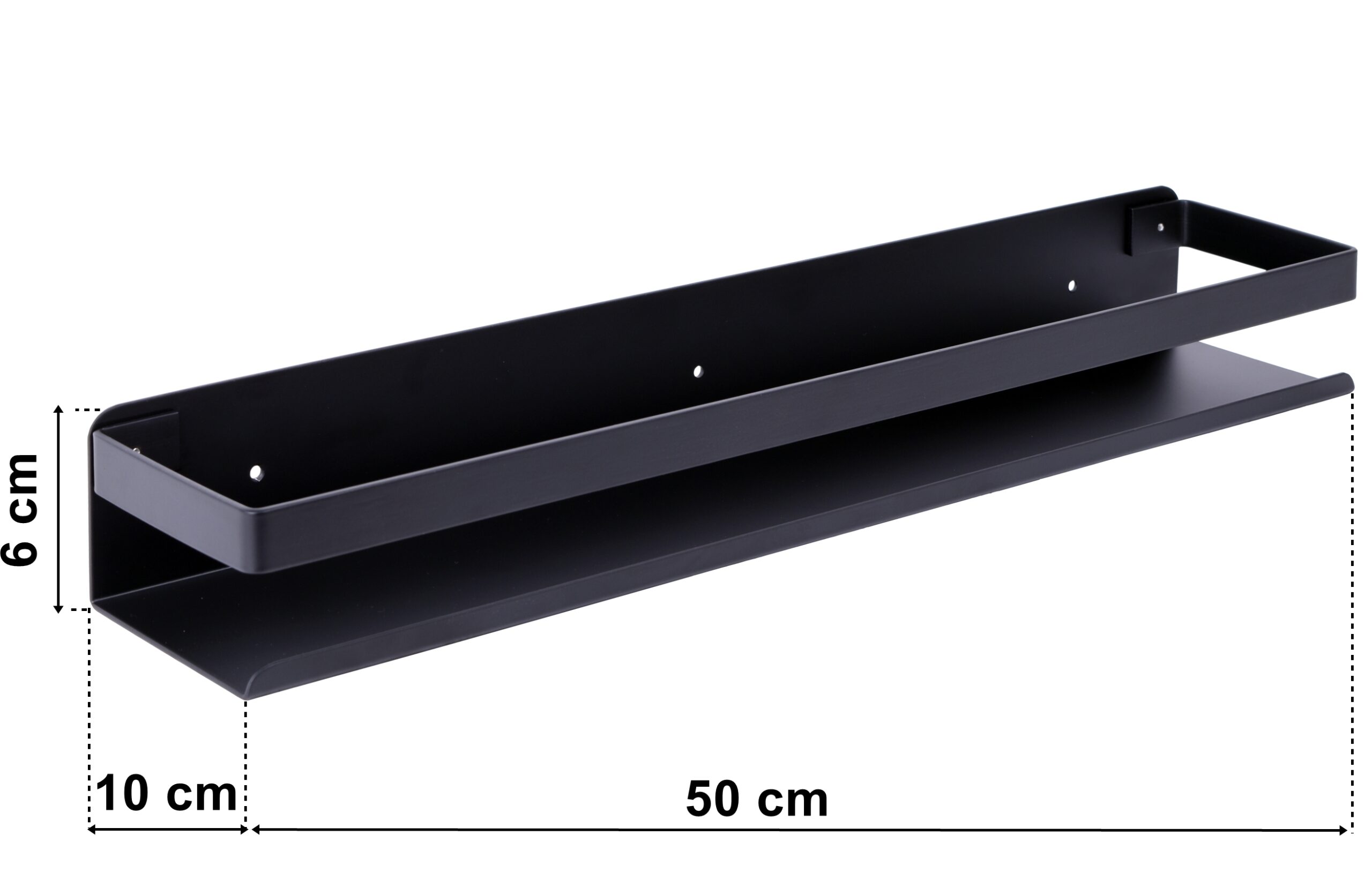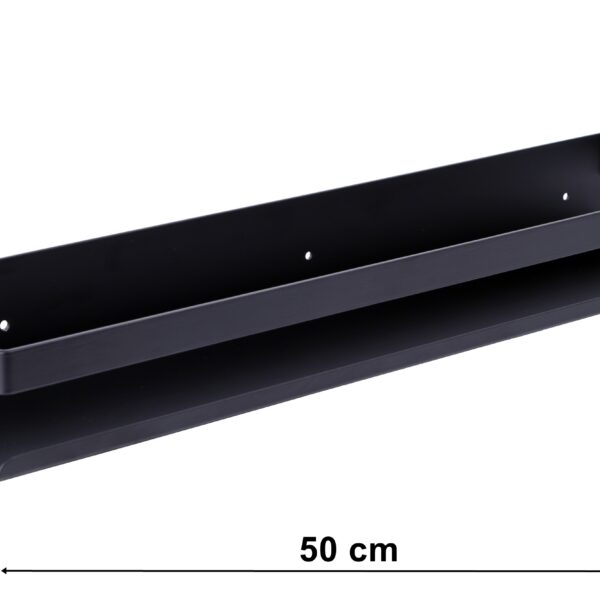 Ponadczasowa, praktyczna i po prostu piękna – półka Megara pomoże uporządkować każdą przestrzeń. Doskonale sprawdzi się w łazience jako półka na kosmetyki. Można ją zamontować także w kuchni, jako przybornik na przyprawy, wyeksponuje eleganckie słoje z makaronem, cukrem, kawą itp. Dzięki szerokości 50 cm zmieści niemal wszystkie akcesoria i pozwoli zaprowadzić porządek w pomieszczeniu. Wykonano ją ze stali nierdzewnej i pomalowano proszkowo na czarny mat. Dzięki temu pozostaje wodoodporna. Polecamy szczególnie do wnętrz loftowych, rustykalnych i glamour.